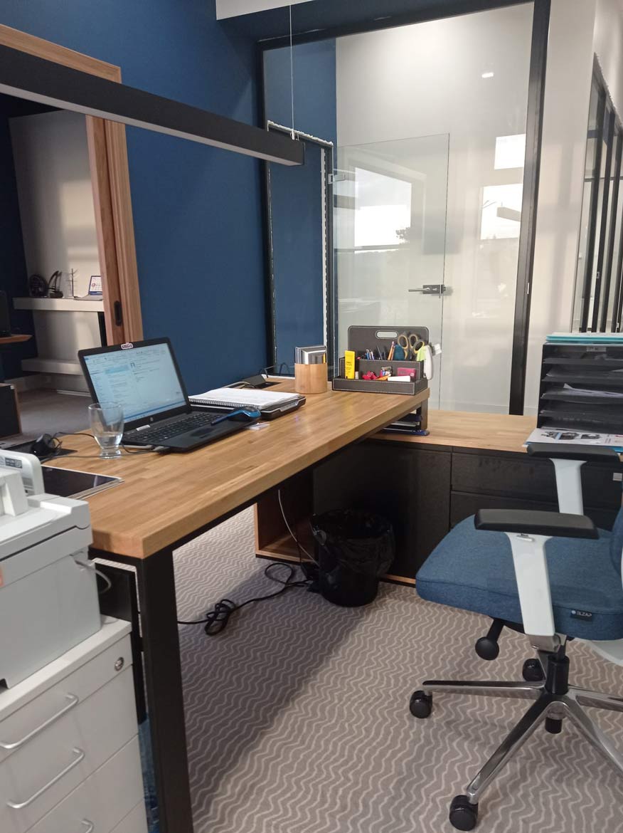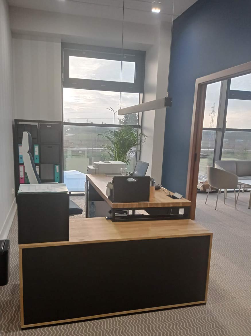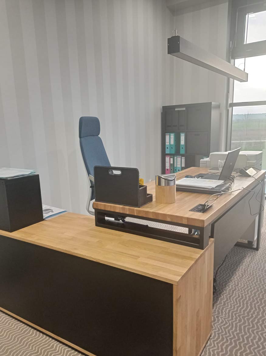 Für das Wiszniewski Boat Centre haben wir einen massiven Eckschreibtisch mit passendem Sockel gefertigt. Es handelt sich um ein Möbelstück, das die tägliche Arbeit erleichtern soll – es bietet viel Arbeitsfläche, einen praktischen Platz für Geräte und funktionale Schubladen für Dokumente und kleine Gegenstände. Das ganze Möbelstück wurde in einer minimalistischen, modernen Form gefertigt, so dass es perfekt in die Büroräume des Kunden passt.