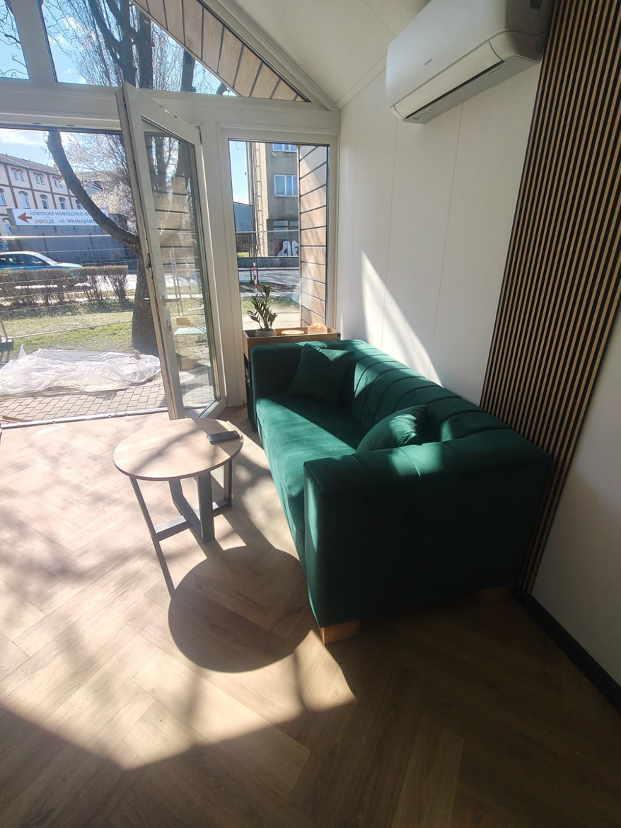Für das Unternehmen ROLniczy Port in Swidnica haben wir einen kleinen Ruhebereich eingerichtet, der sich sowohl für Pausen als auch für Besprechungen eignet.
