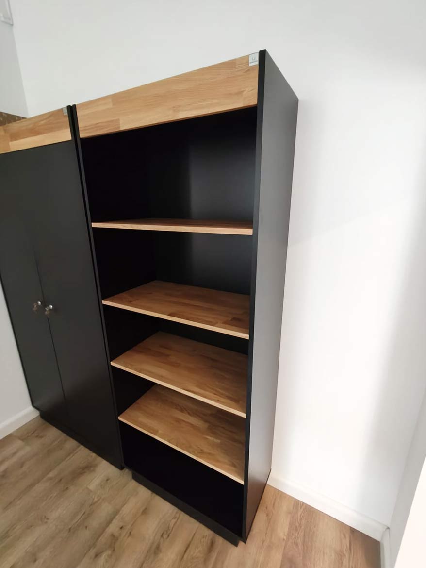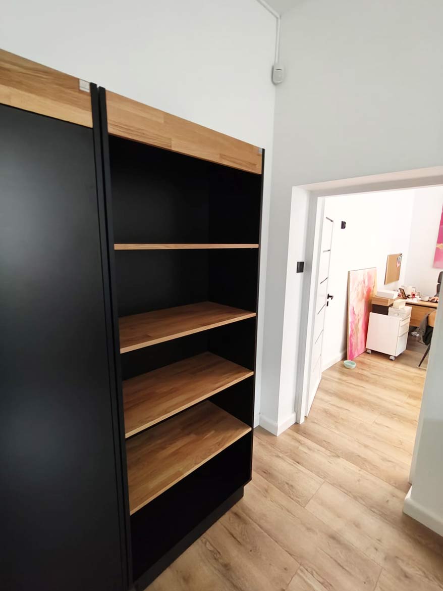 Kleiderschrank und Bücherregal aus Holz für die Marketingagentur Frau Karolina aus Łódź
