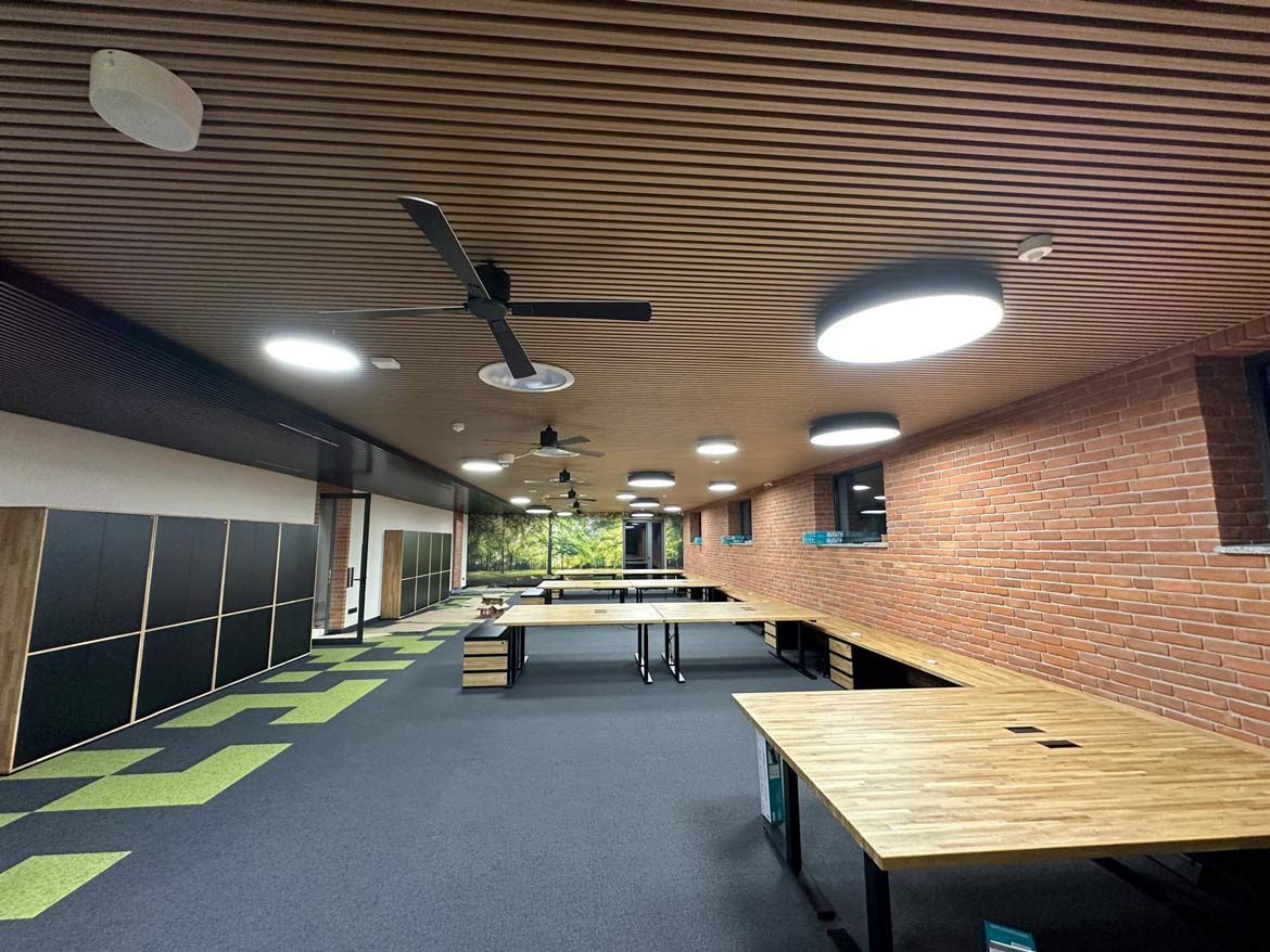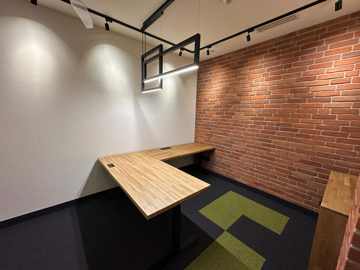 Wir haben uns für Ergonomie, natürliche Materialien und durchdachte Lösungen entschieden. Jedes Element – von den Schreibtischen über die Regale bis hin zu den Details – wurde im Hinblick auf den Komfort und die Bedürfnisse der Benutzer ausgewählt. Das Ergebnis? Ein Raum, der einlädt, inspiriert und sagt: „Hier wollen Sie arbeiten!“.