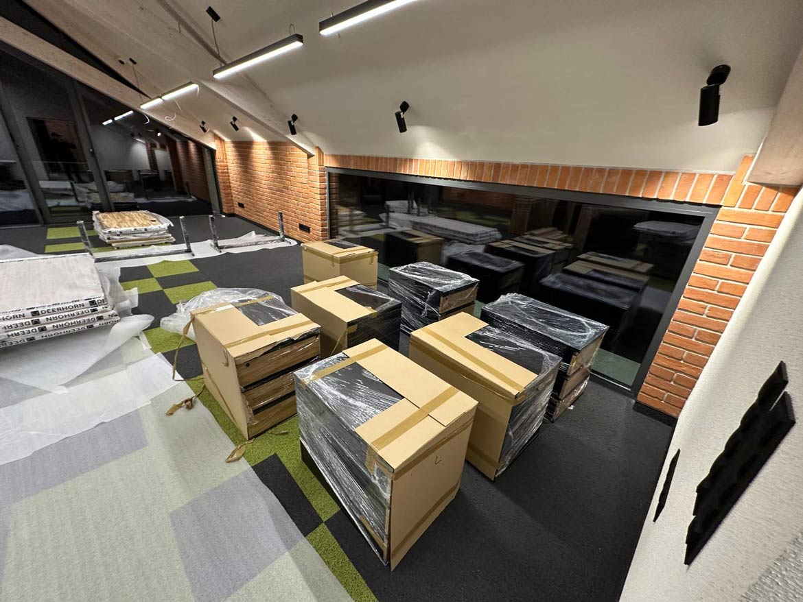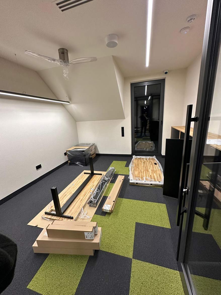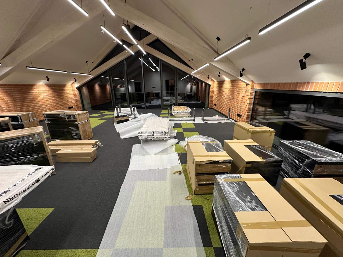 Allerdings zeigen wir nur selten den Blick hinter die Kulissen unserer Arbeit – in der Regel sind wir in vollem Gange: Wir organisieren die Logistik, stellen sicher, dass die Möbel sicher angeliefert werden können, und führen, wenn nötig, eine perfekte Montage durch. Wir wissen, dass der Einzug neuer Möbel in ein Büro ein anspruchsvoller Moment ist – mehrere Personen müssen daran beteiligt sein, was oft das ganze Team für eine Weile auf Eis legt.