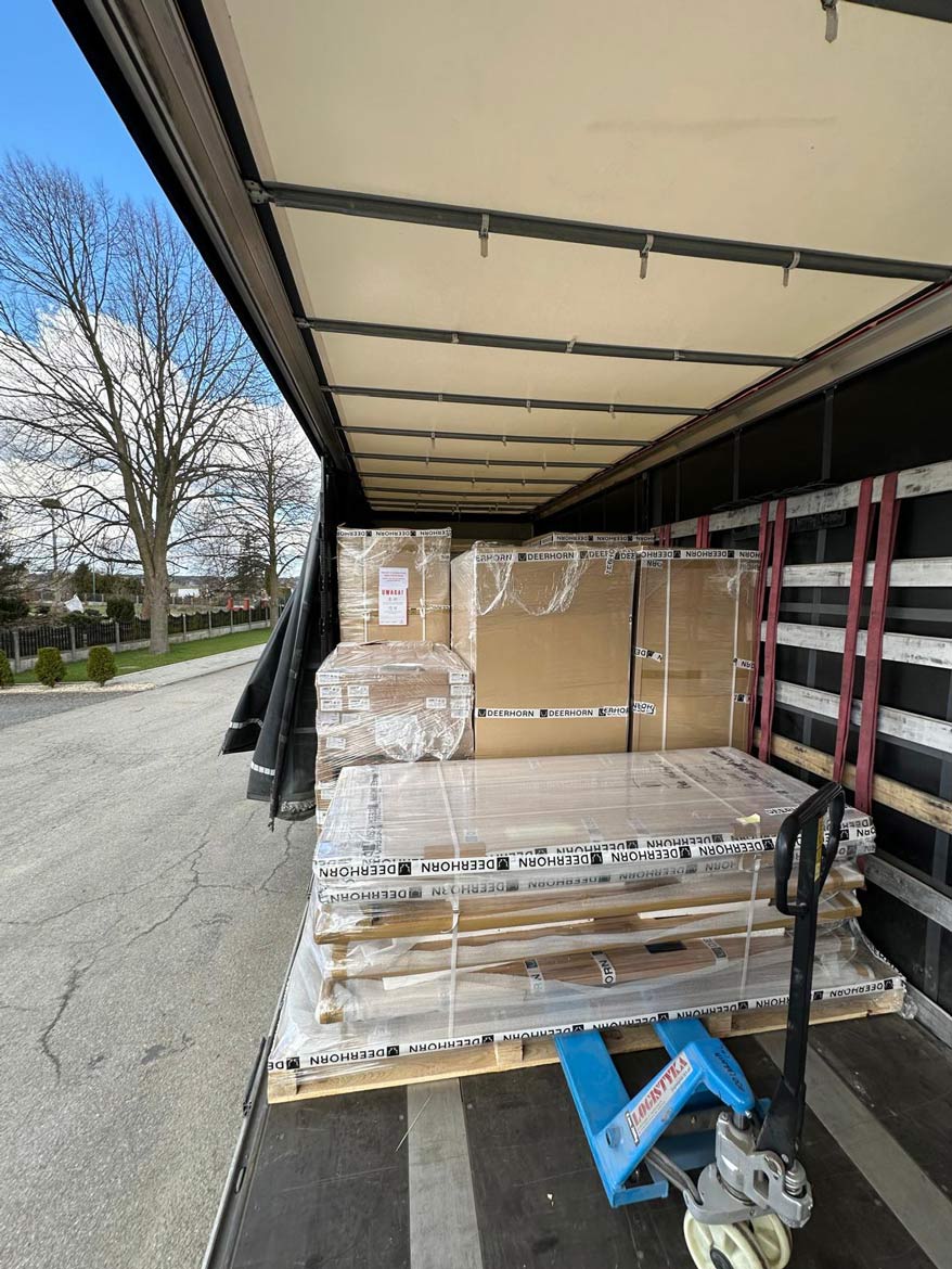 Die Lieferung von Büromöbeln ist unser tägliches Geschäft. Autos mit dem Deerhorn-Logo fahren jeden Tag in verschiedene Teile Polens und ins Ausland.