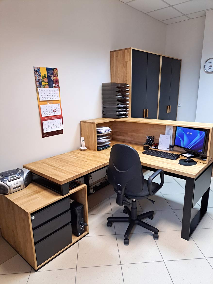 Für das Kreiskrankenhaus in Chełmża haben wir neue Empfangsthekenmöbel angefertigt, die einen freundlichen und geordneten Ort für die tägliche Arbeit schaffen.