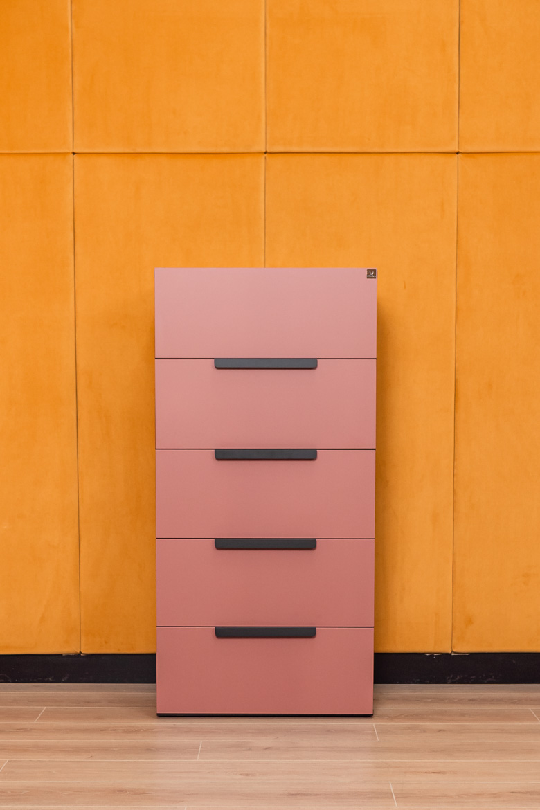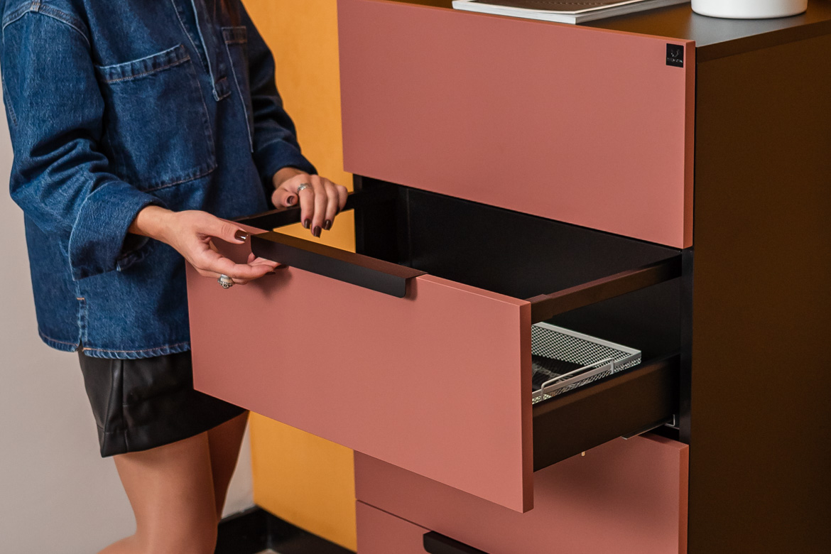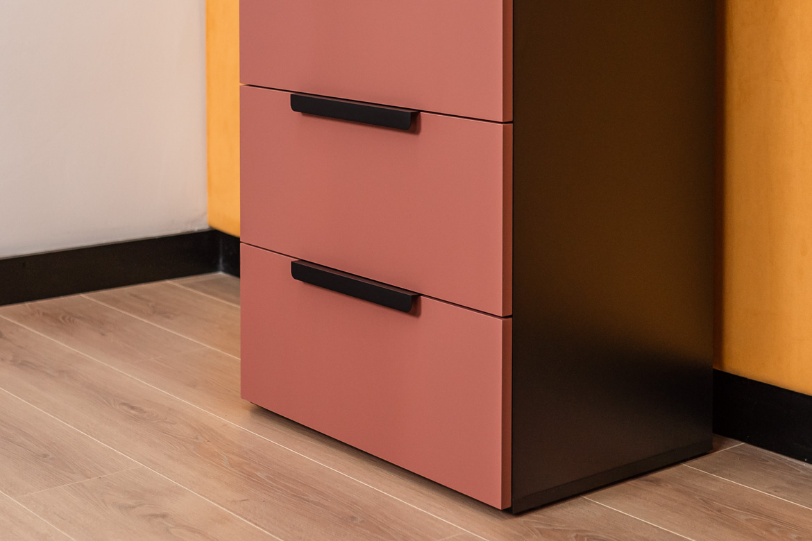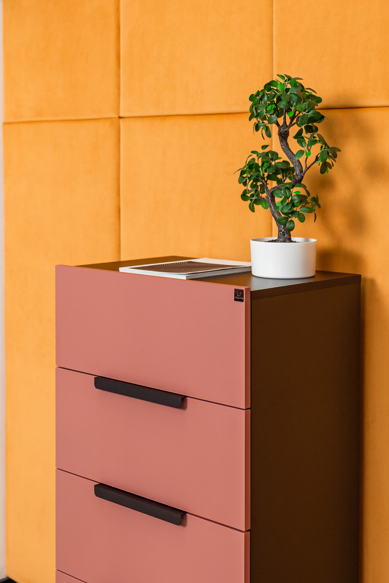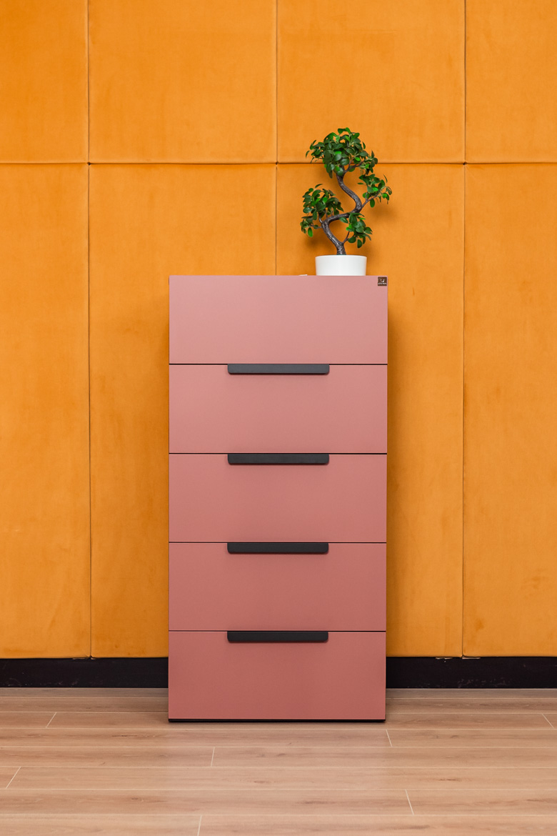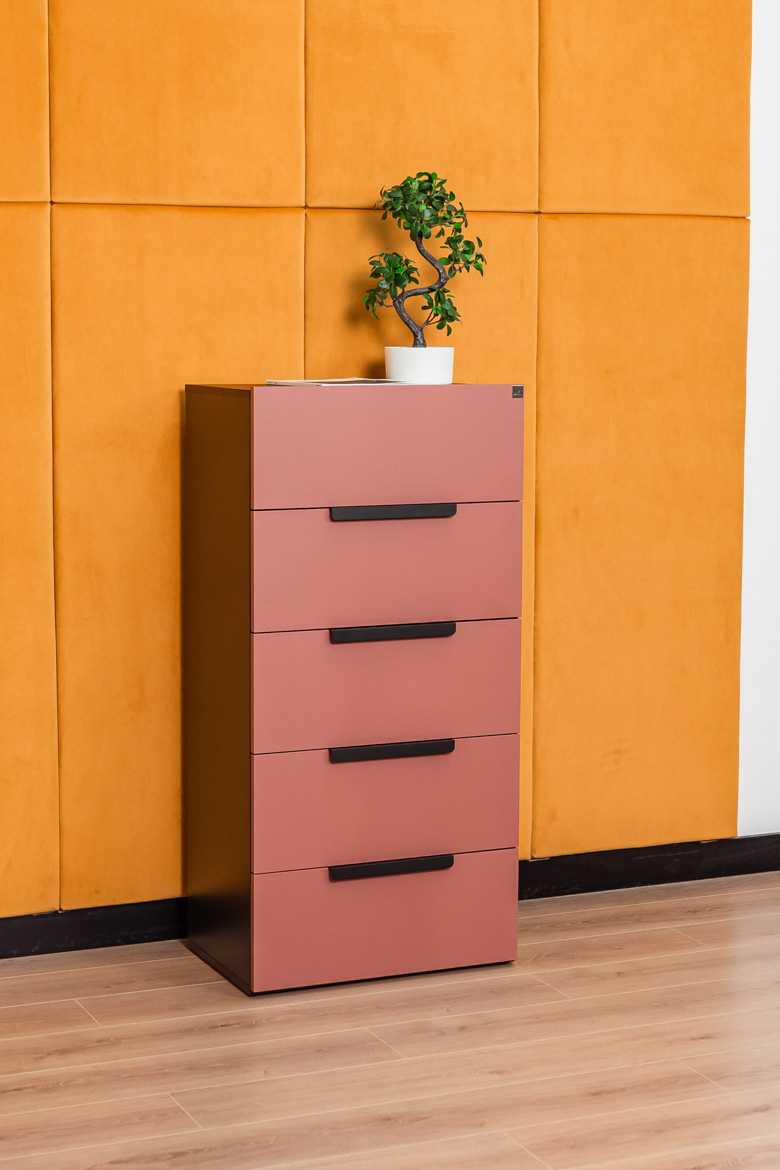 - Fronten der Kommode: Möbelplatte in Ziegelfarbe