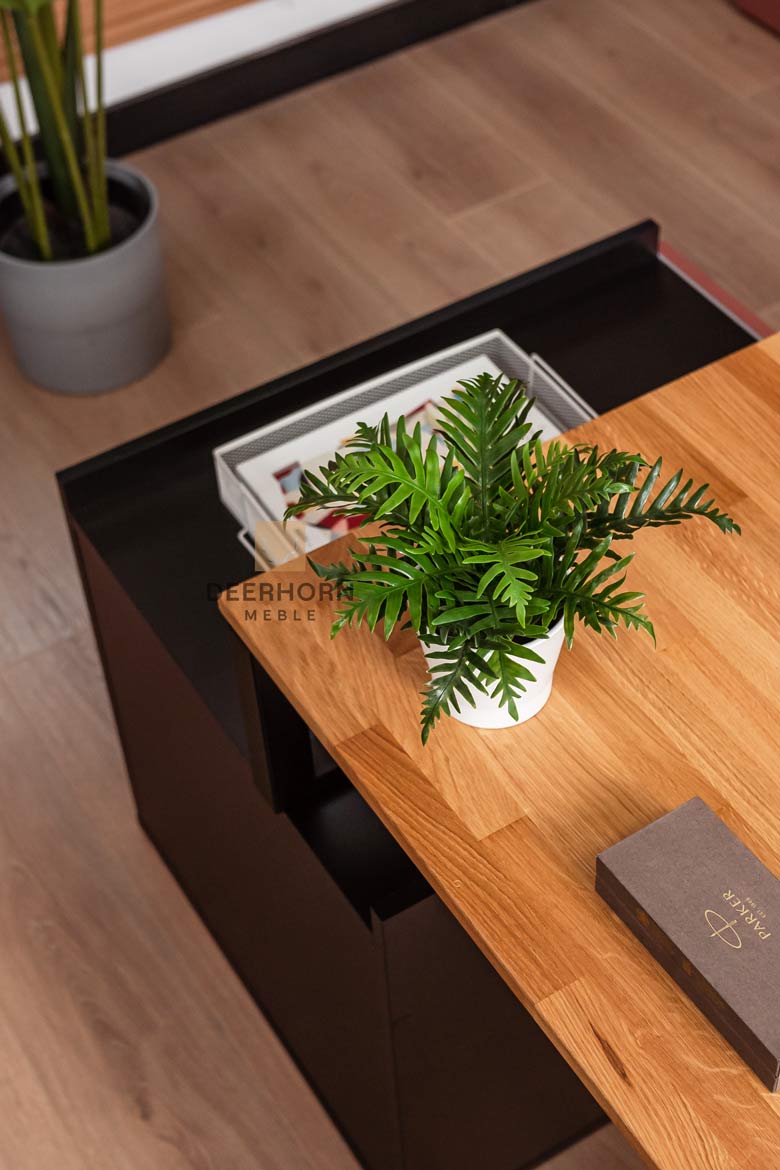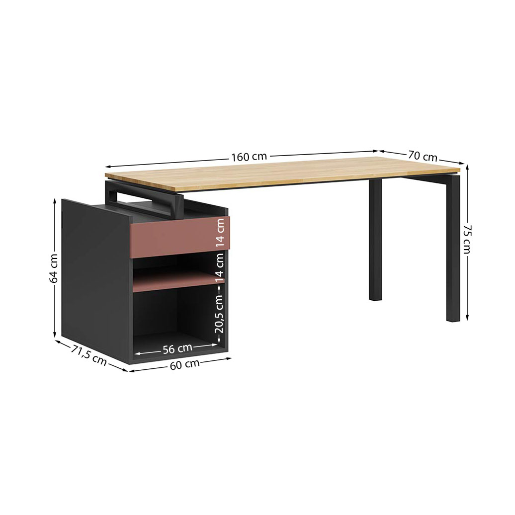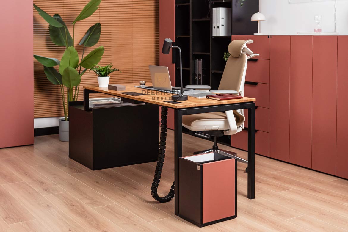 Der Computer-Arbeitstisch mit Sockel und Schublade ist eine praktische Lösung für Menschen, die bei ihren täglichen Aufgaben Wert auf Ordnung und Komfort legen. Die Tischplatte bietet ausreichend Platz für einen Computer, einen Monitor und weiteres Bürozubehör, während der daneben platzierte Container mit Schublade es Ihnen ermöglicht, Dokumente, Utensilien und andere notwendige Dinge in Reichweite zu halten. Die robuste Konstruktion macht den Schreibtisch stabil und langlebig, und sein schlichtes, vielseitiges Design passt sowohl zu Büro- als auch zu Heimbüroeinrichtungen. Mit dieser Kombination können Sie einen komfortablen Arbeitsbereich schaffen, der Ordnung und eine bessere Organisation des Tages fördert.