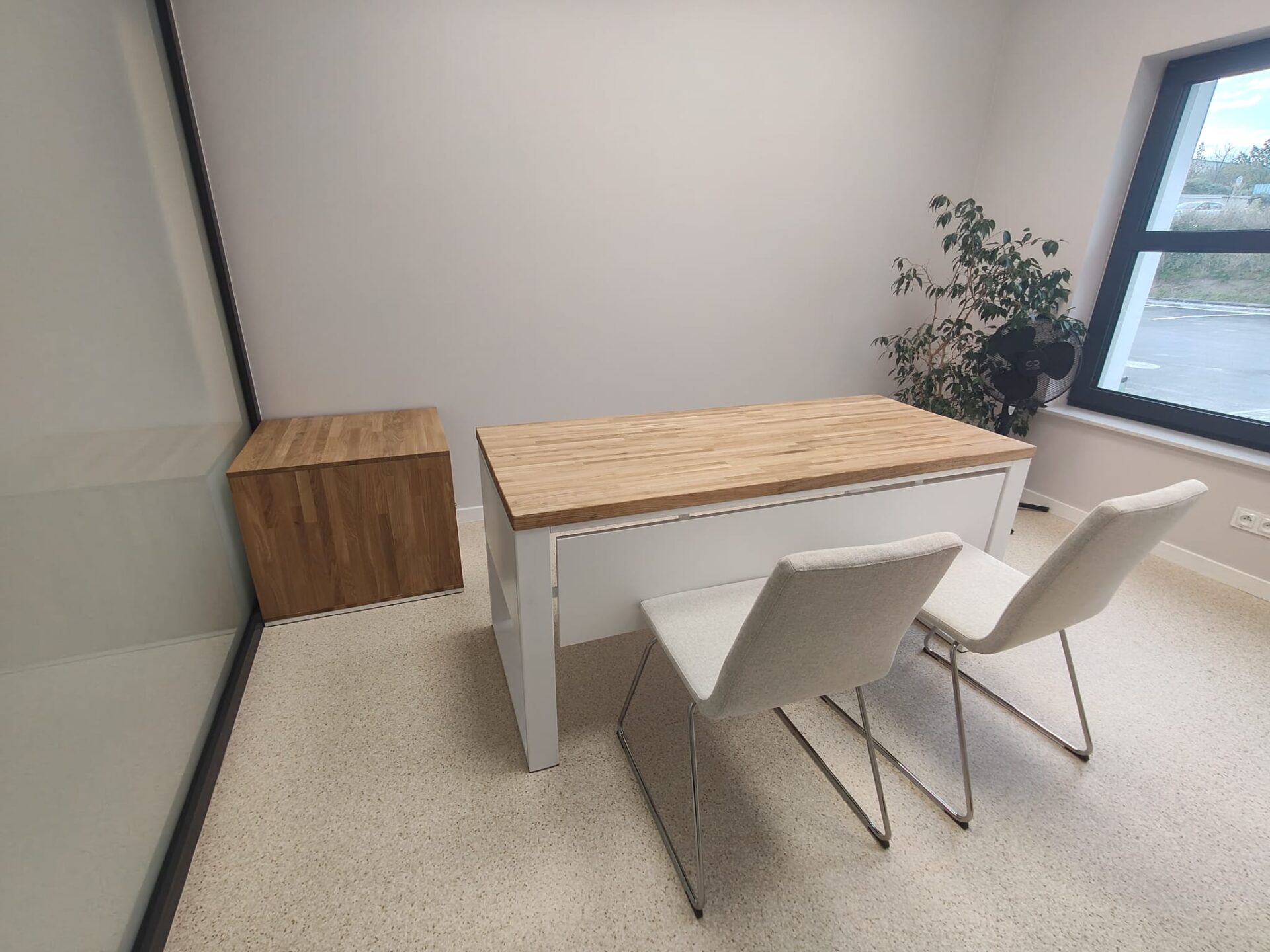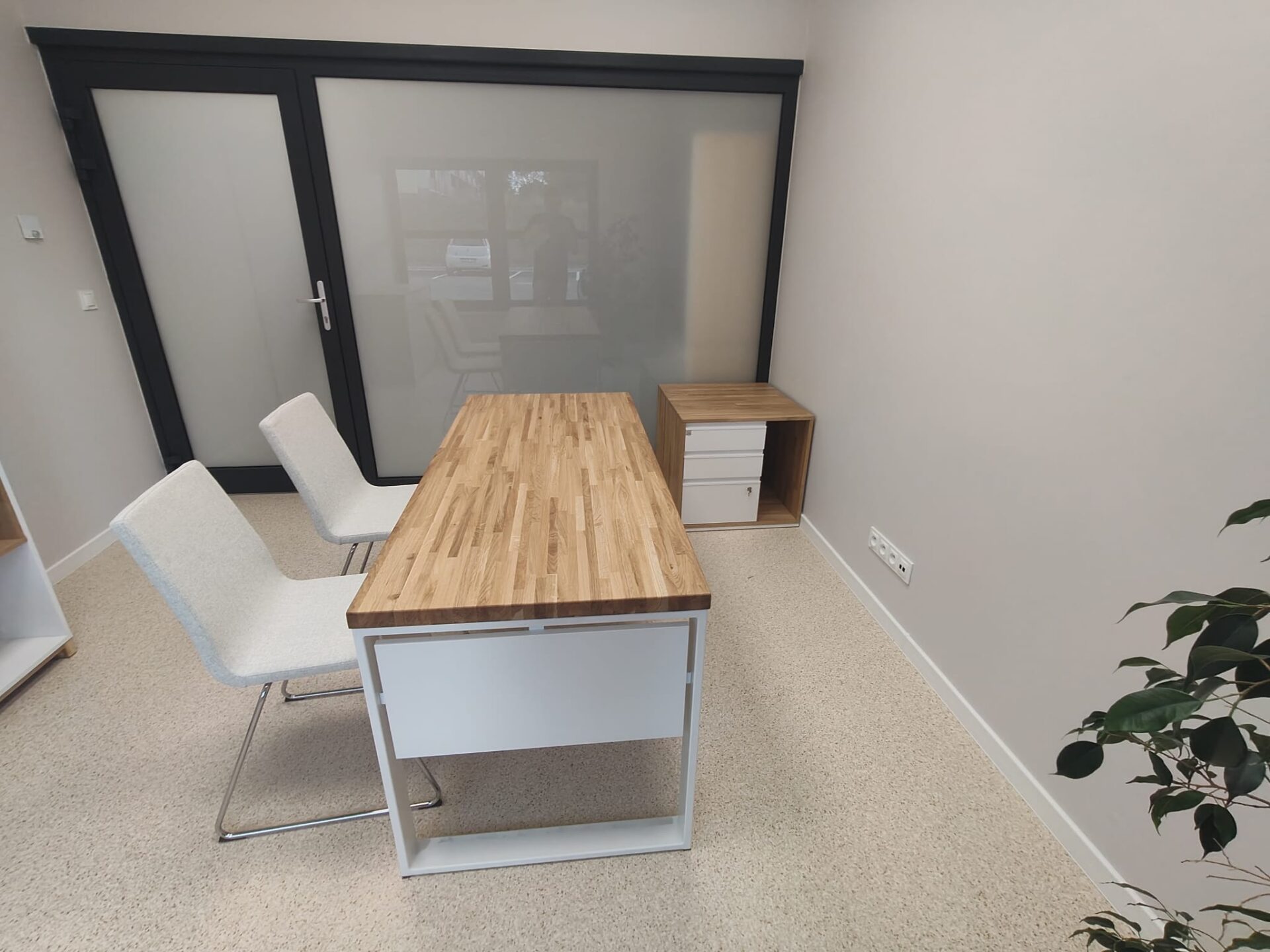 Kunden sind ständig auf der Suche nach modernen Lösungen – daher entwickeln wir unser Sortiment konsequent weiter. Auch der Metall-Holz-Schreibtisch wurde zu diesem Zweck modifiziert. Bereits der Austausch eines Rahmenteils durch eine kürzere Variante genügte, um das Design zu modernisieren und dem Möbelstück ein neues Erscheinungsbild zu verleihen. Der Metallrahmen in Kombination mit dem Sockel, der ebenfalls in einer aufgefrischten Version erhältlich ist, bildet eine kohärente Einheit und überzeugt dabei durch seine phänomenale Optik. Dadurch nimmt er auch weniger Platz ein, was insbesondere für kleinere Räume von Vorteil ist.