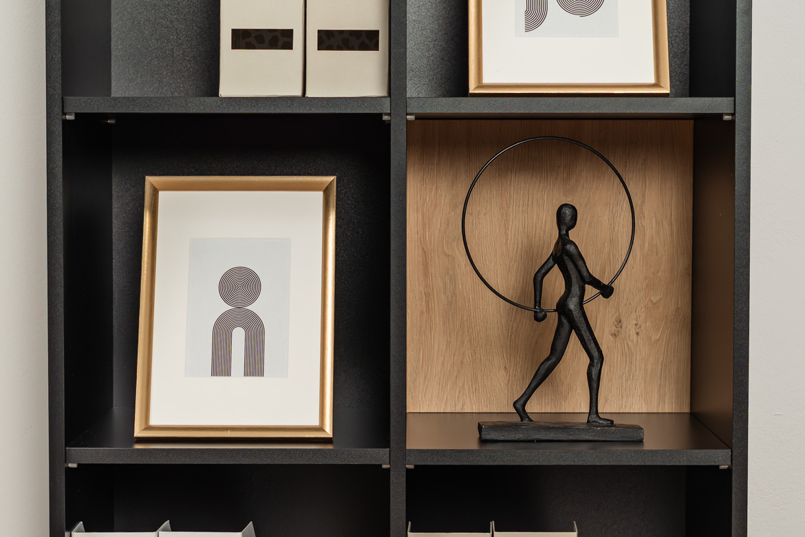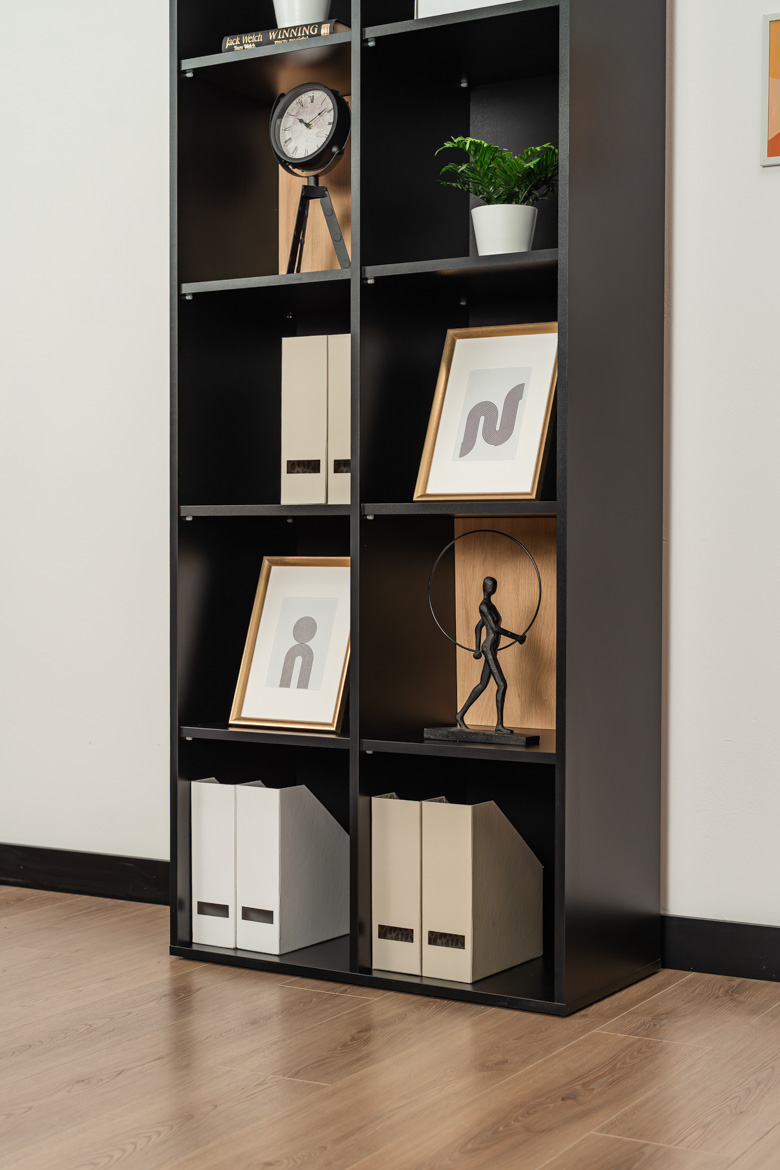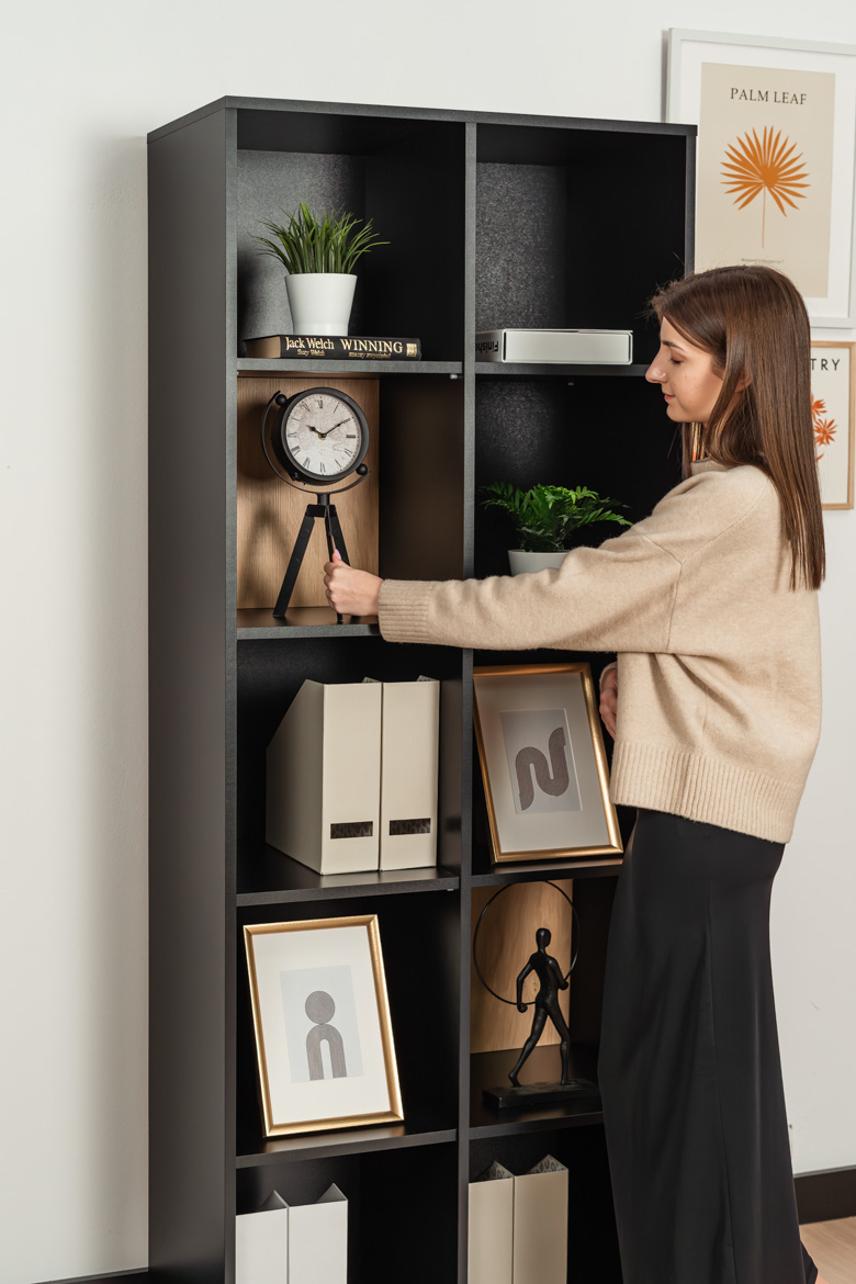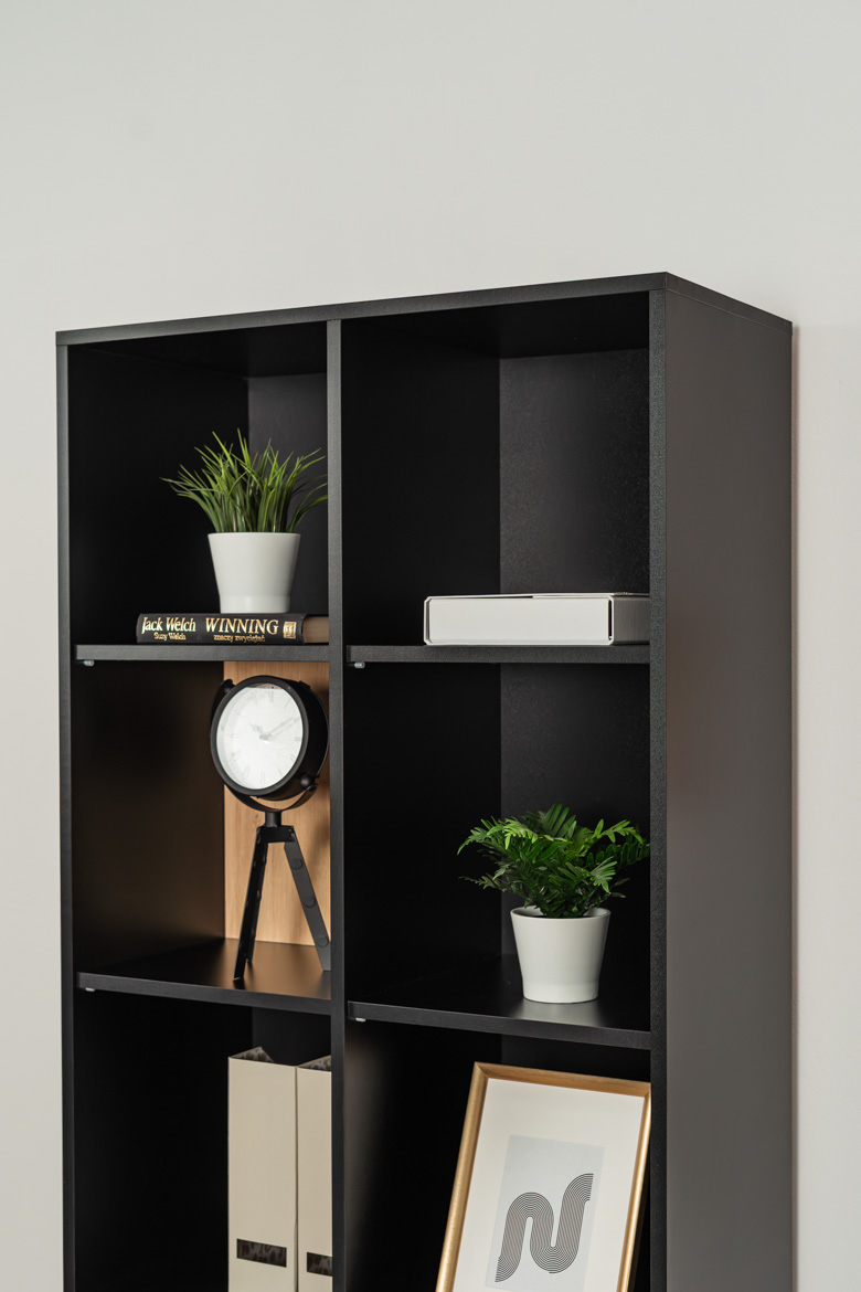 - Gehäuse: Möbelplatte in Mattschwarz