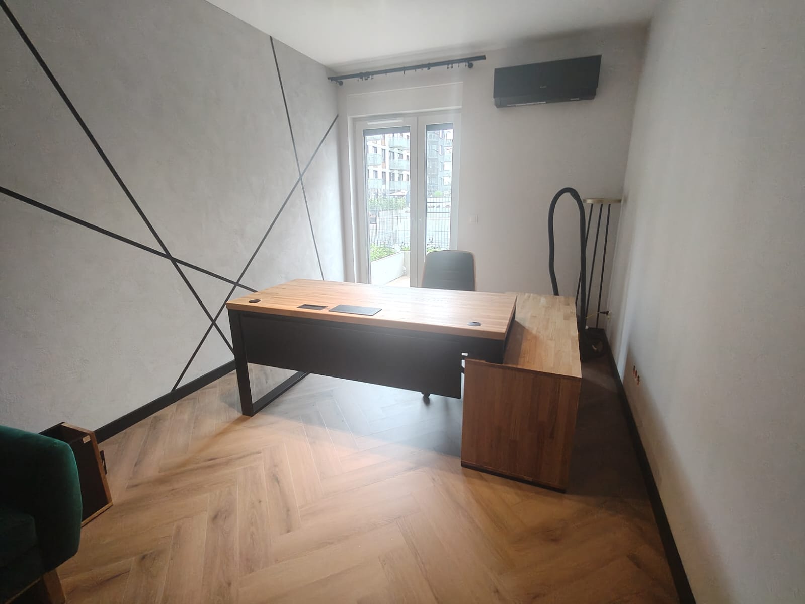 Eckschreibtisch schwarz mit Holz- sehen Sie sich weitere Fotos von diesem Schreibtisch an