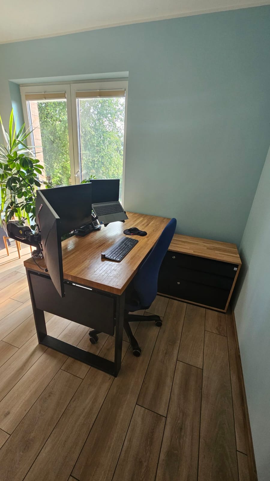 6. funktionalität – Diese Anforderung wurde mit einem vielseitigen Sockel erfüllt, dessen Möglichkeiten sich nicht nur auf die Schubladen beschränken. Der Sockel ist zusätzlich mit Platz für einen Desktop-Computer oder eine Tasche ausgestattet. Darüber hinaus ist es möglich, z. B. ein Notebook zwischen dem Sockel und der Tischplatte zu befestigen.