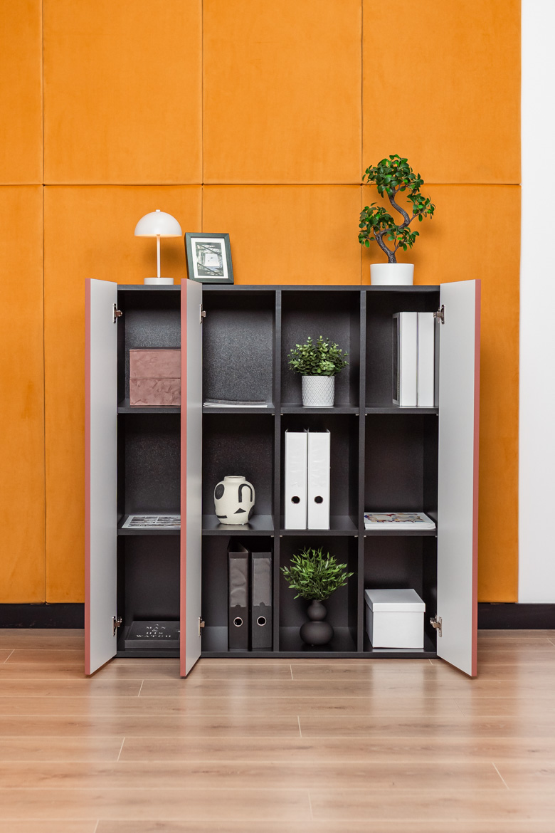 Der Hauptvorteil dieser Kommode sind ihre geräumigen Fächer. Darin können Sie problemlos all Ihre Dokumente, Ordner, Bürozubehör oder andere wichtige Dinge unterbringen. Auf diese Weise herrscht immer Ordnung auf Ihrem Schreibtisch und im gesamten Raum. Alles, was Sie brauchen, ist leicht zu erreichen, was die Arbeit erheblich erleichtert.