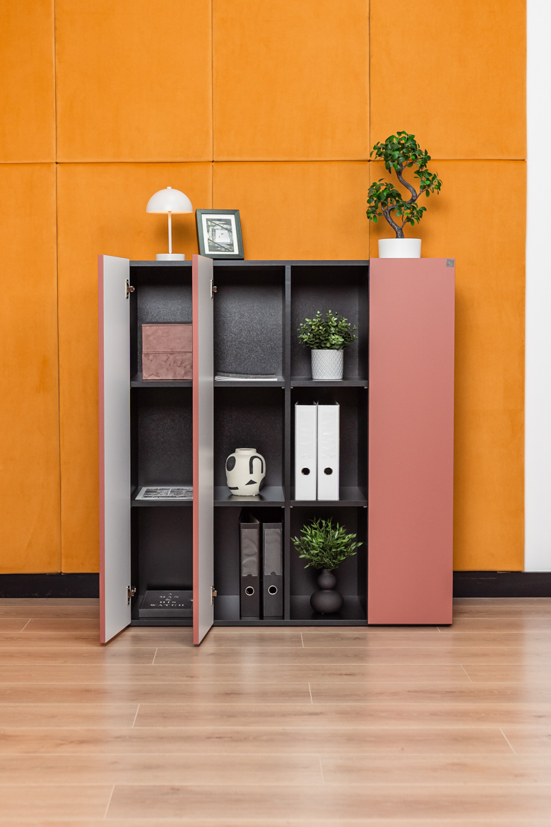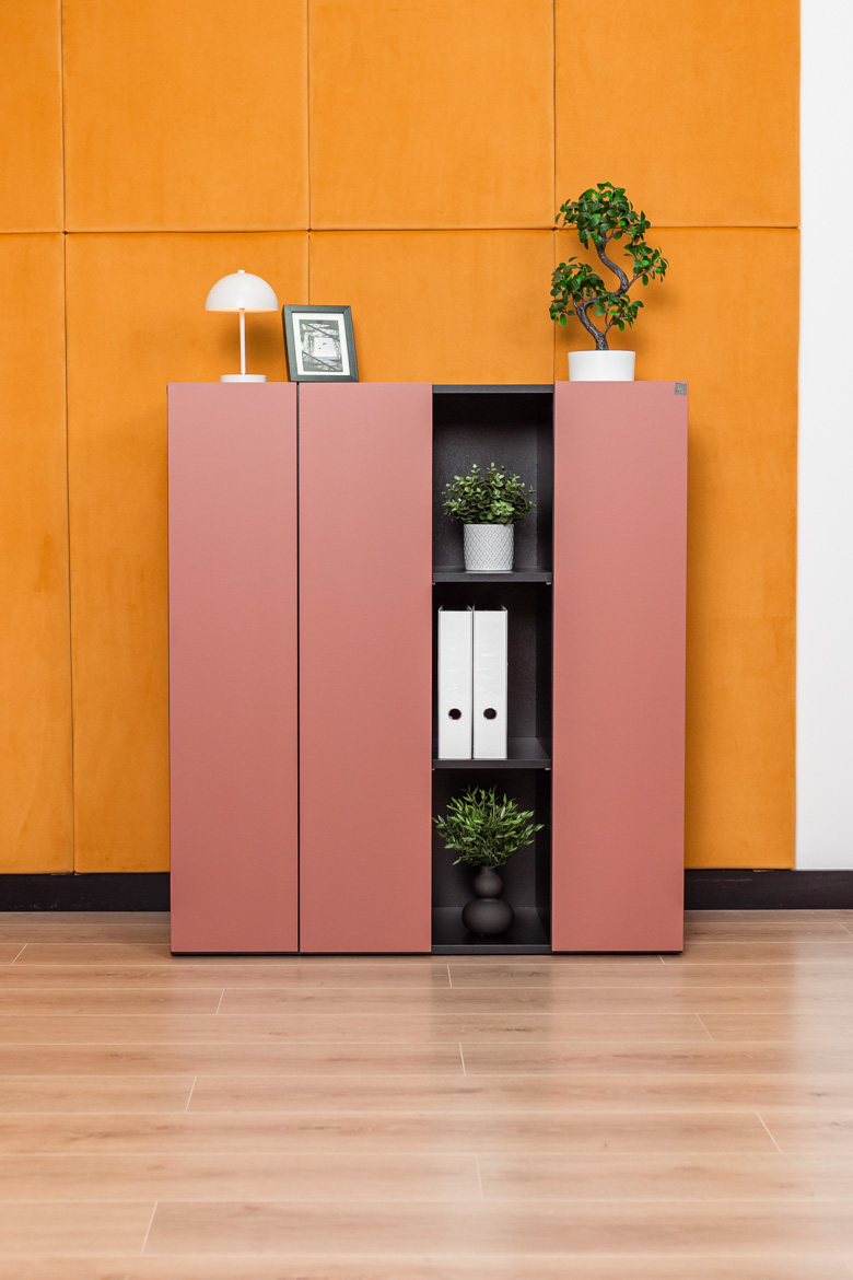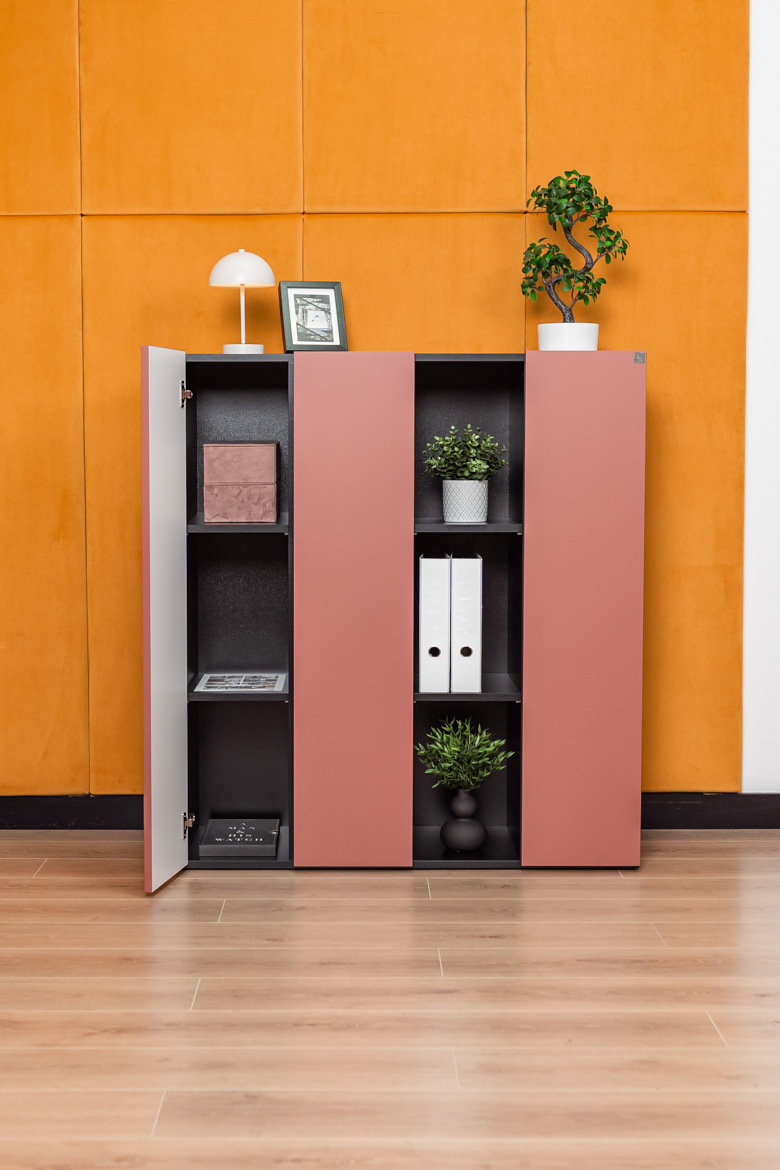 Die Kommode ist sehr solide, da sie aus hochwertigen Materialien gefertigt ist. Ihr Design ist modern und elegant, wodurch sie in viele Einrichtungen passt, und sie passt besonders gut zu der Begrünung im Büro. Diese Kommode ist eine gute Wahl für jedes Unternehmen, das Wert auf Professionalität legt und ein funktionelles, gut organisiertes und ästhetisch ansprechendes Büro haben möchte. Sie trägt dazu bei, einen Ort zu schaffen, an dem Sie bequemer und effizienter arbeiten können.