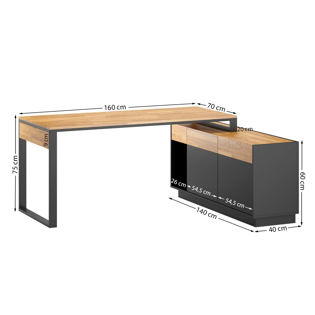 Der moderne und designorientierte Eckschreibtisch mit einem Sockel auf der rechten Seite ist bereits die Wahl vieler zufriedener Benutzer, die seinen Stil und seine Funktionalität schätzen. Die Kunden betonen, dass sie dank des praktischen Sockels mehr Stauraum gewonnen haben und ihre Büros einen modernen Charakter bekommen haben. Schließen Sie sich ihnen an und schaffen Sie den perfekten Arbeitsbereich!