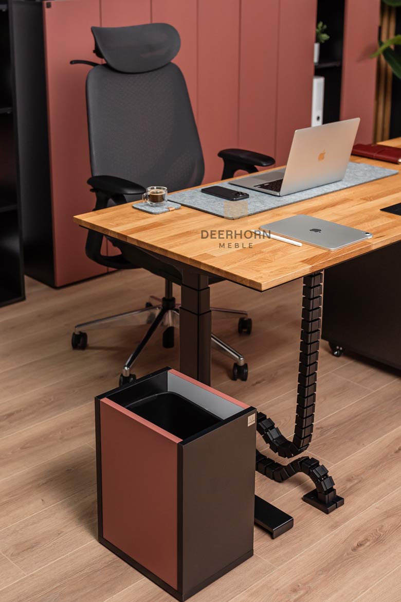 Das minimalistische Design in Kombination mit der robusten Konstruktion macht den Schreibtisch sowohl für moderne Unternehmensräume als auch für ein Chefbüro oder ein Home Office geeignet. Die große Tischplatte bietet ausreichend Platz für einen Computer, einen Monitor und alle notwendigen Büroutensilien.