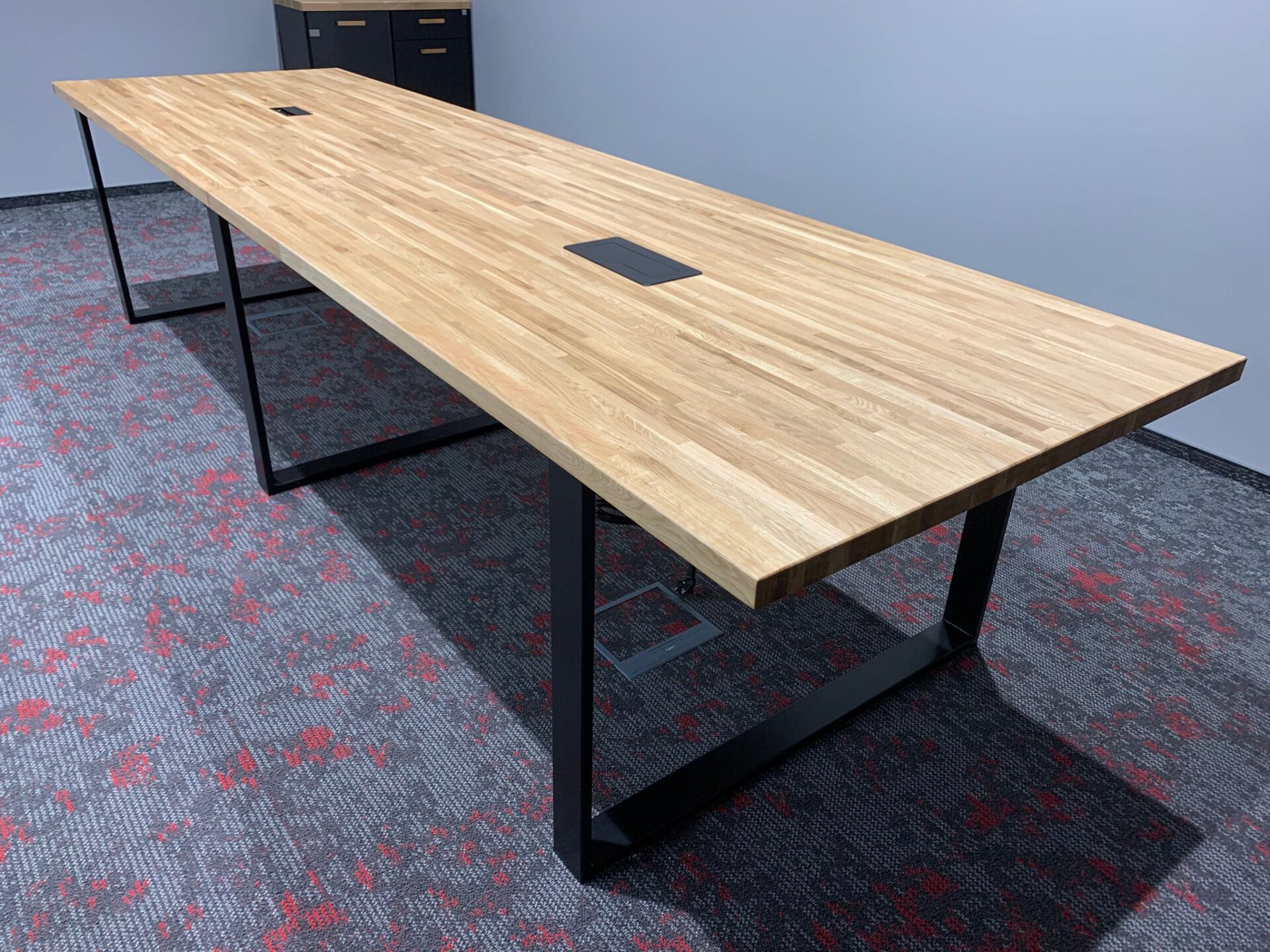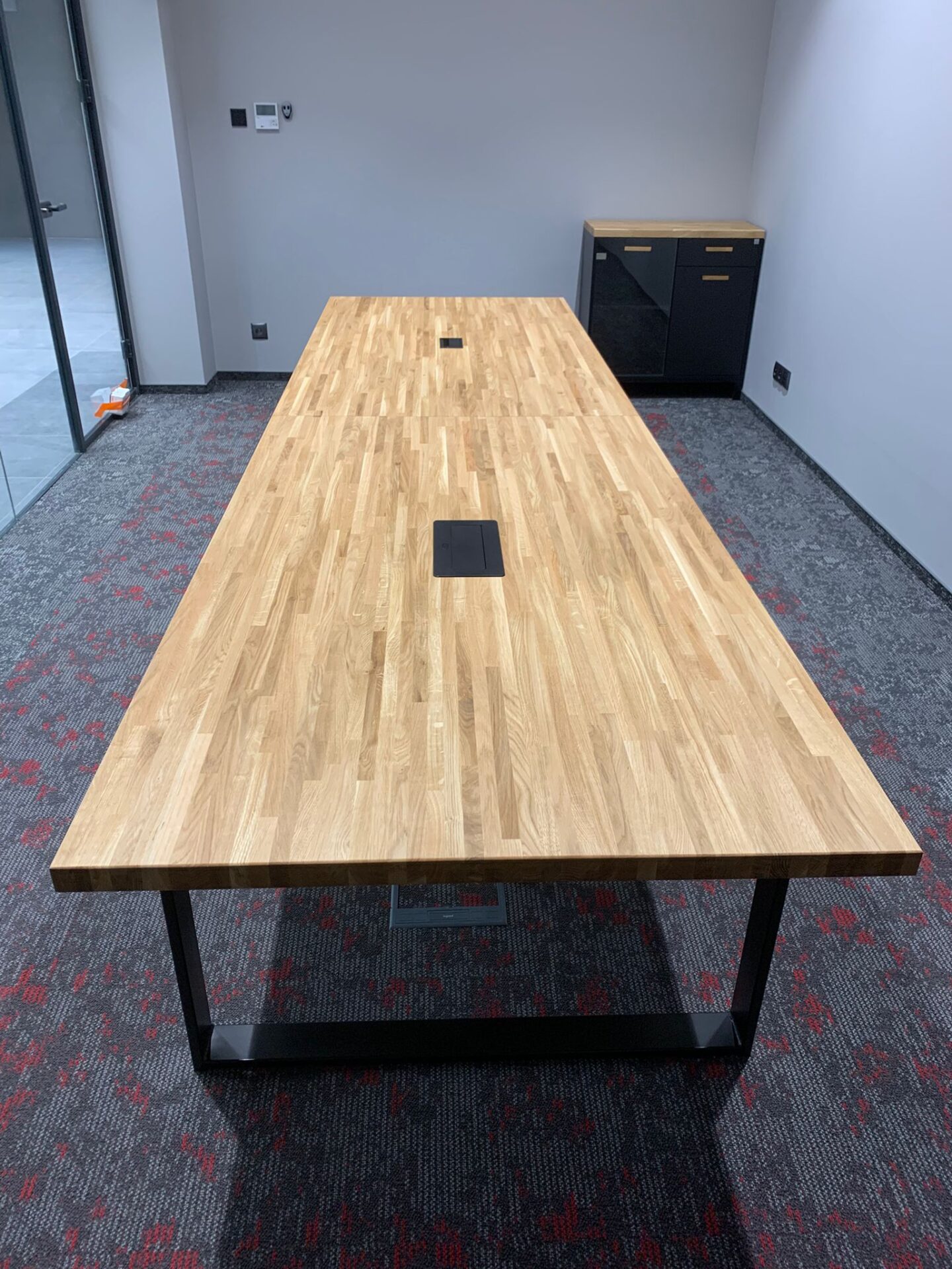 Großer Konferenztisch aus Holz mit Kabelmanagement 350×100 cm