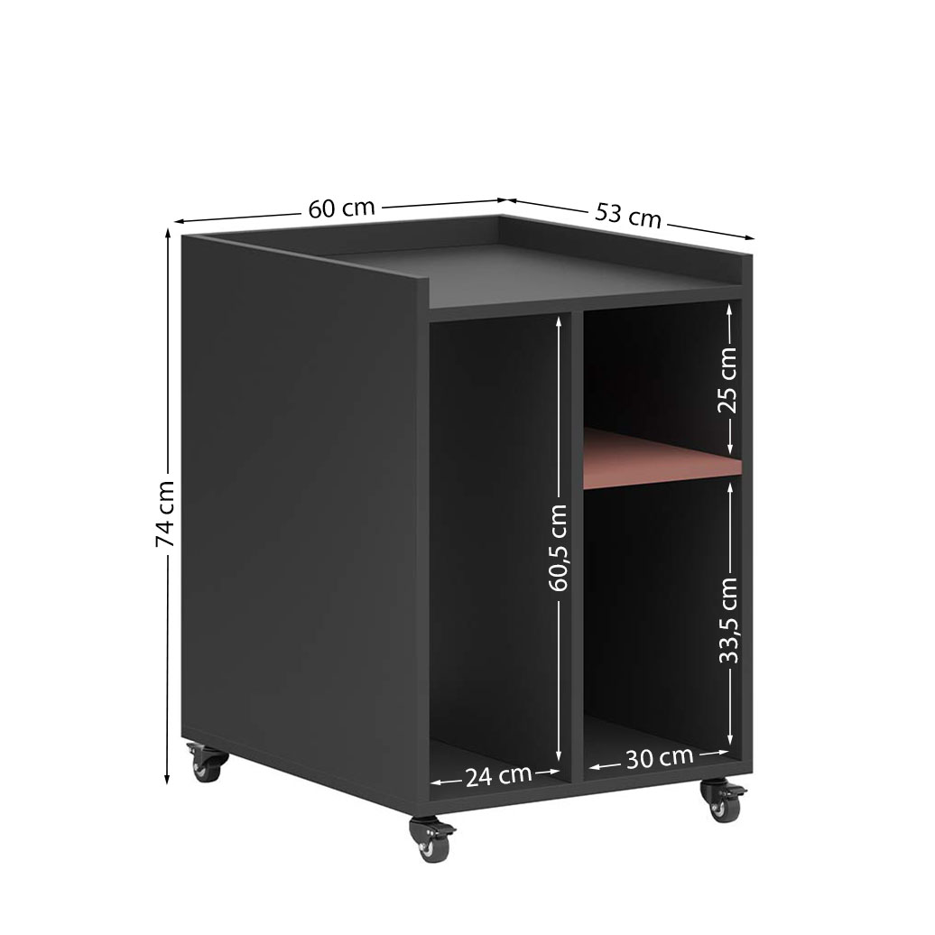 Es wurde mit Blick auf die Bequemlichkeit des Alltags entworfen und verfügt über offene Regale, die es Ihnen ermöglichen, alles griffbereit zu haben – ohne unnötiges Suchen. Dank der feststellbaren Rollen können Sie die Möbel schnell umstellen, je nachdem, wie das Büro eingerichtet ist oder was das Team gerade braucht.