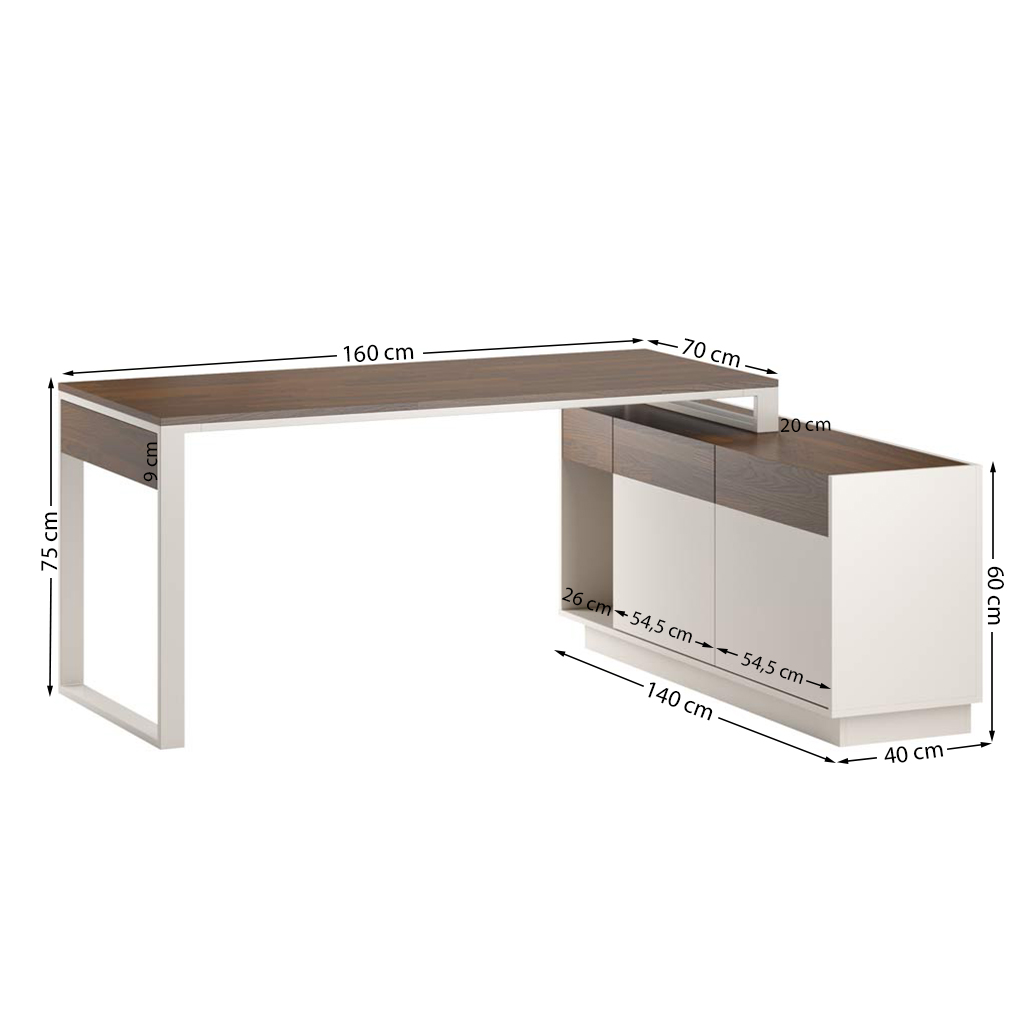 In der Prestige Office-Kollektion haben wir eine neue elegante Farbkombination eingeführt: Elfenbein mit dunklem Holz, die den Innenräumen einen einzigartigen Charakter verleiht. Diese Kombination verbindet Subtilität mit Tiefe und schafft einen harmonischen Raum, der ideal für Arbeit und Entspannung ist.