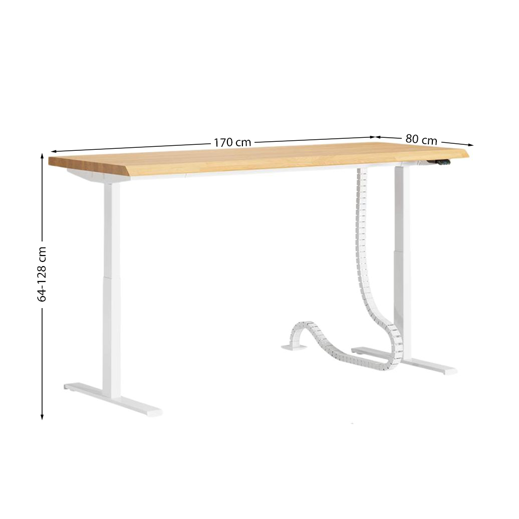 Weißer Schreibtisch mit Höhenverstellung. Unterschnitt. 170x80cm