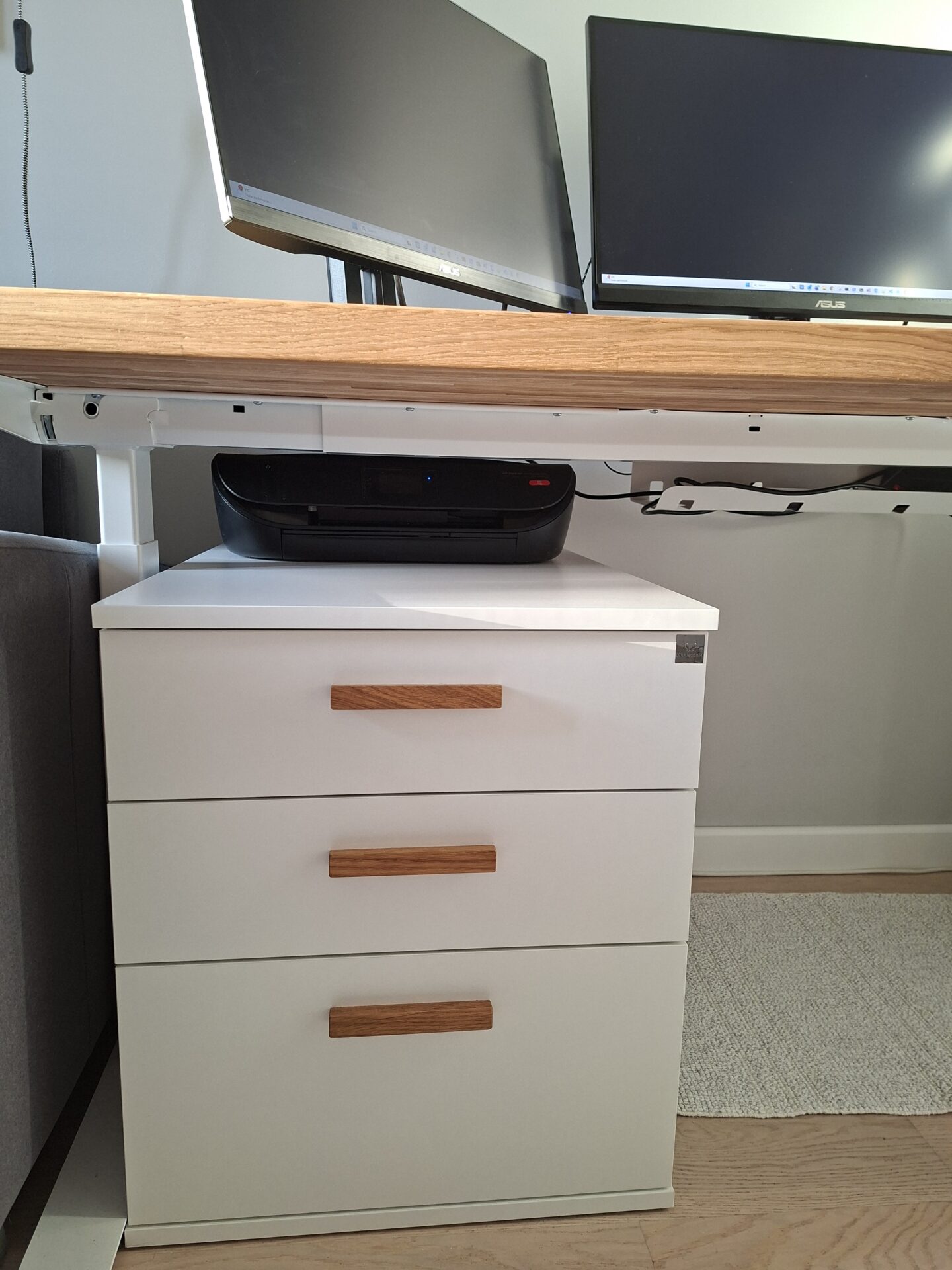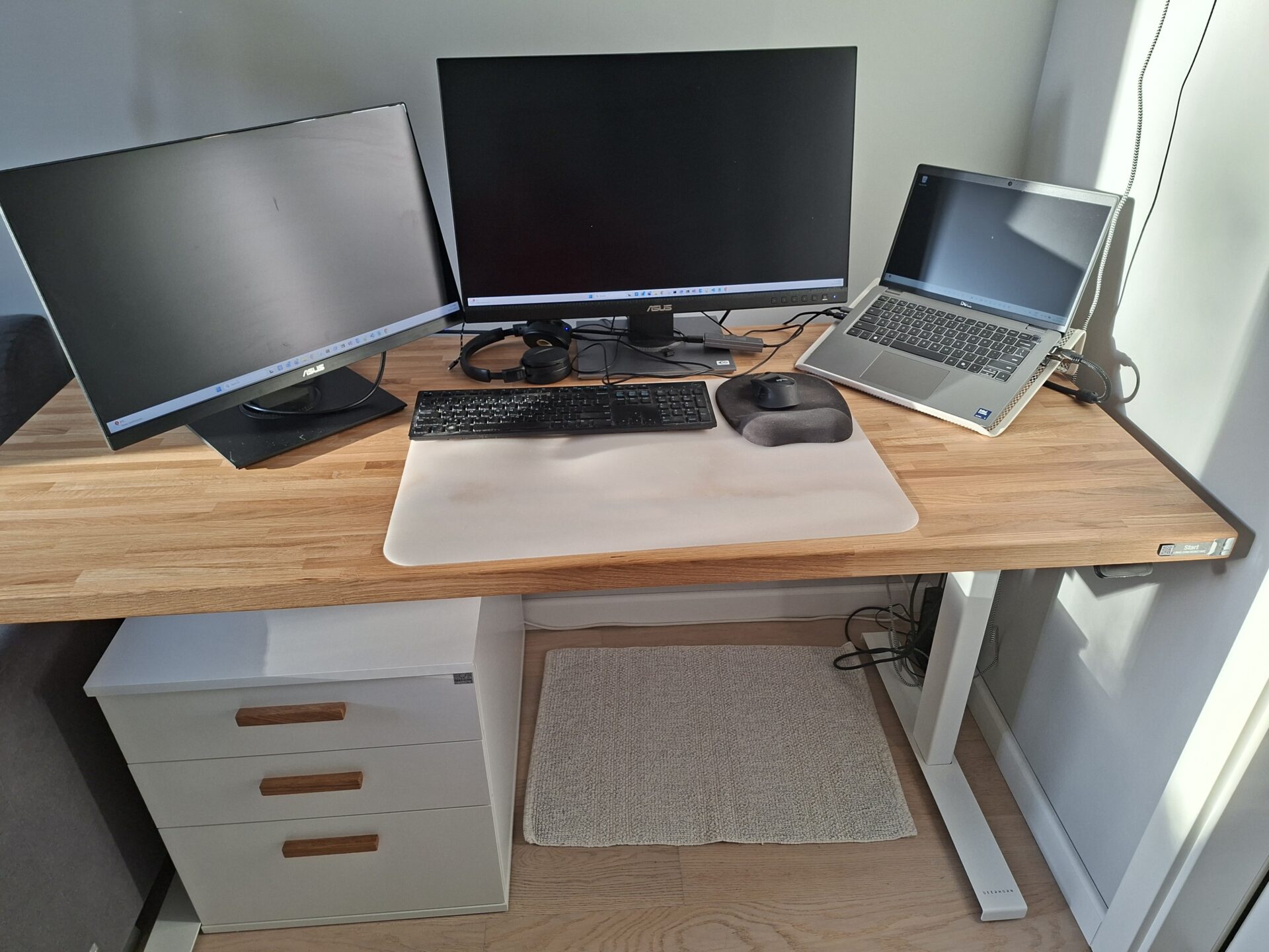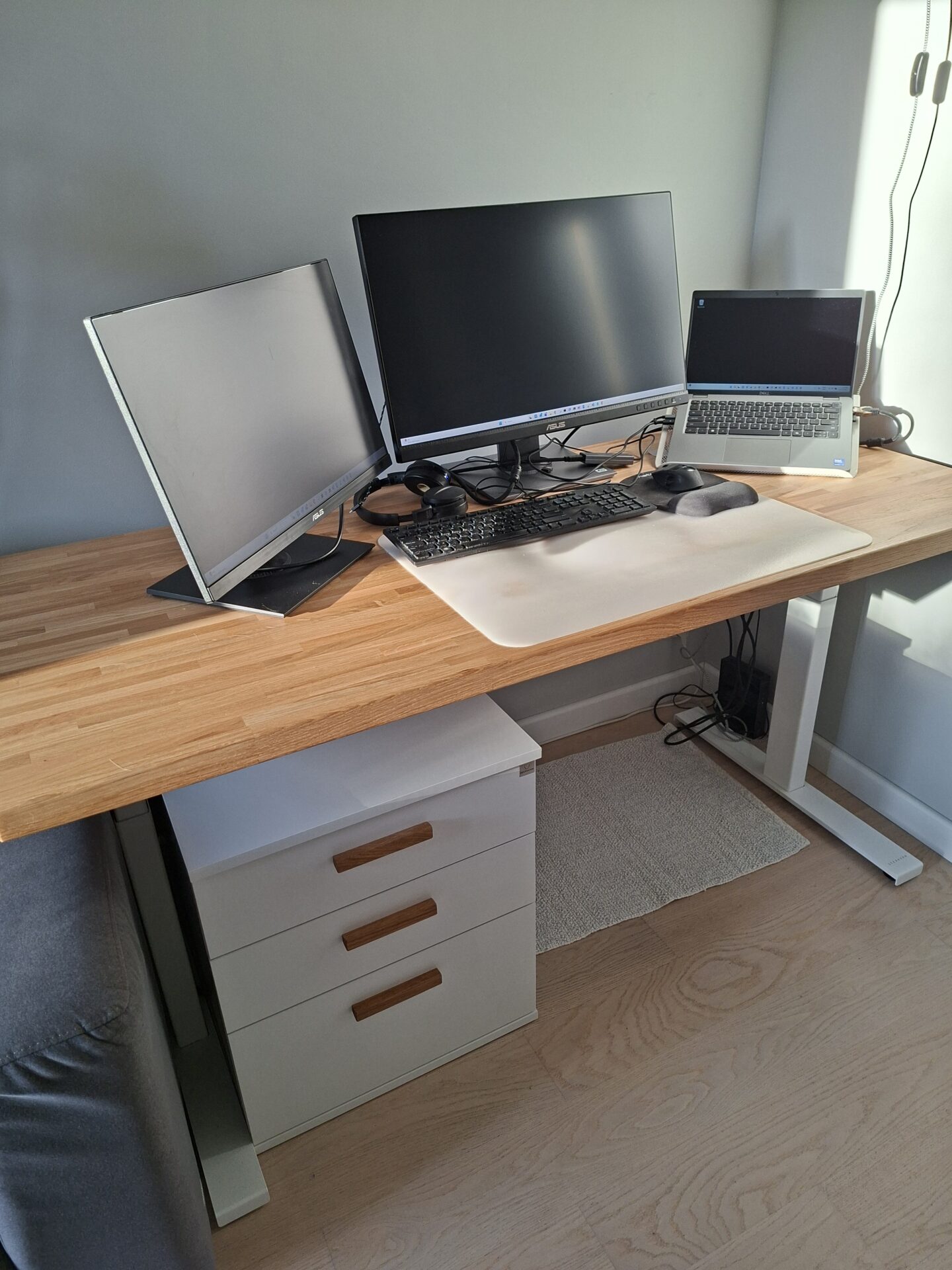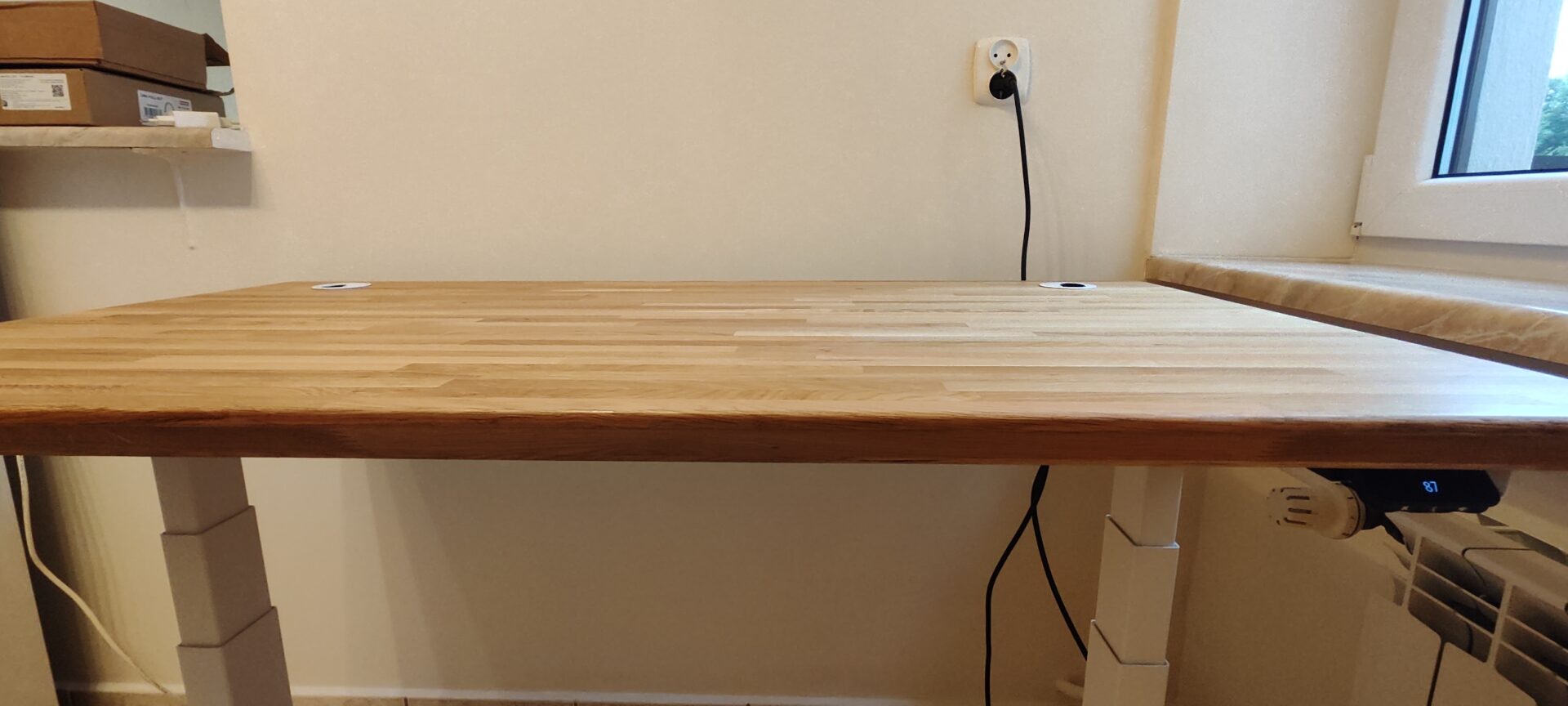 Ein höhenverstellbarer Schreibtisch ist eine der besten Anschaffungen für mein Heimbüro. In Kombination mit Naturholz sieht er wirklich toll aus.