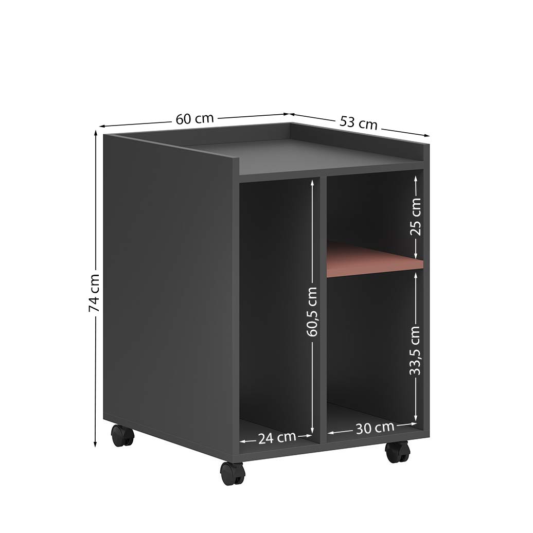 Ein moderner und funktioneller Schreibtisch, der die tägliche Arbeit im Büro und zu Hause erleichtert. Der größte Vorteil dieses Modells ist der mobile Schrank auf Rädern, der als zusätzlicher Stauraum für Ihren Drucker, Ihre Dokumente und Ihr Bürozubehör dient. So bleibt Ihr Arbeitsbereich aufgeräumt und Sie haben alle wichtigen Dinge immer griffbereit.
