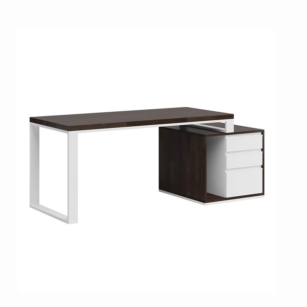 Die ebenholzfarbene Eichenplatte in Kombination mit dem weißen Gestell ist eine kontrastreiche Kombination, die Ihrem Arbeitsbereich Charakter verleiht und Ihre Arbeit besser, effizienter und angenehmer macht .