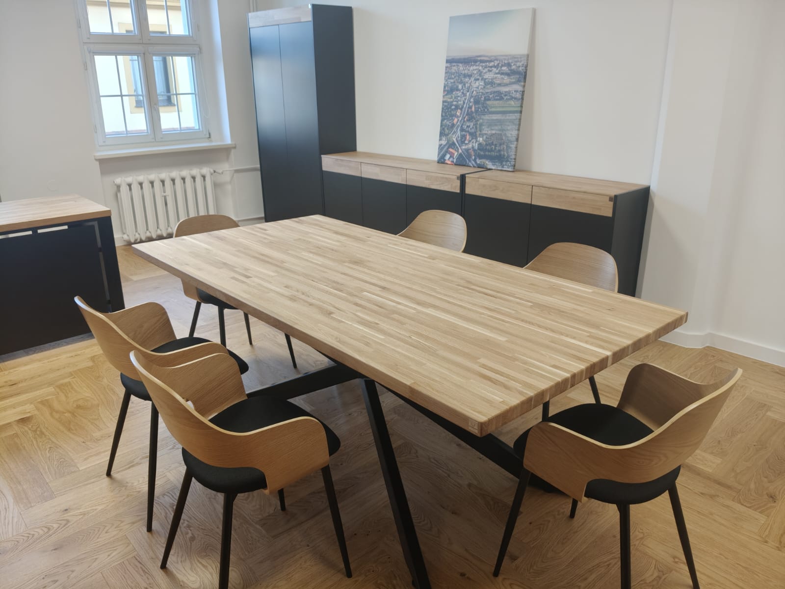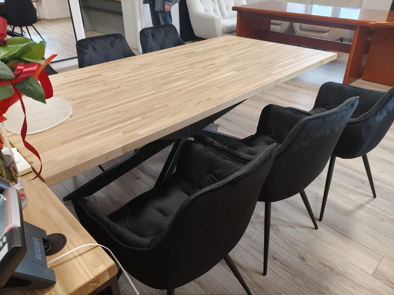 Ten stół nie jest „tłem” — on nadaje ton całemu pomieszczeniu. Masywny, perfekcyjnie wyważony i wykonany z wyczuciem detalu. Przy nim rozmowy trwają dłużej, spotkania są bardziej konkretne, a przestrzeń zyskuje klasę. To mebel, który robi robotę bez zbędnych słów.