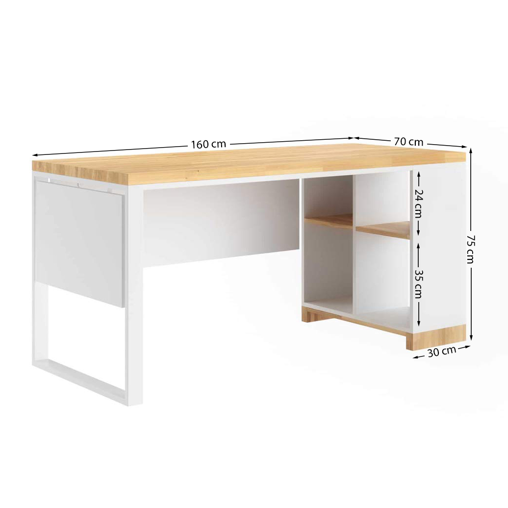 Die funktionelle Tischplatte bietet Platz für eine große Anzahl von Dokumenten. Hier werden Sie Ihren Laptop, Ihren Organizer und Ihre Bücher unterbringen. Auf einer Seite des Schreibtisches befinden sich Ablagen , in die Sie zusätzliche Ordner für Dokumente und Druckerpapier legen können. So haben Sie alles, was Sie brauchen, schnell zur Hand. Es gibt eine linke und eine rechte Version, in weiß und schwarz.