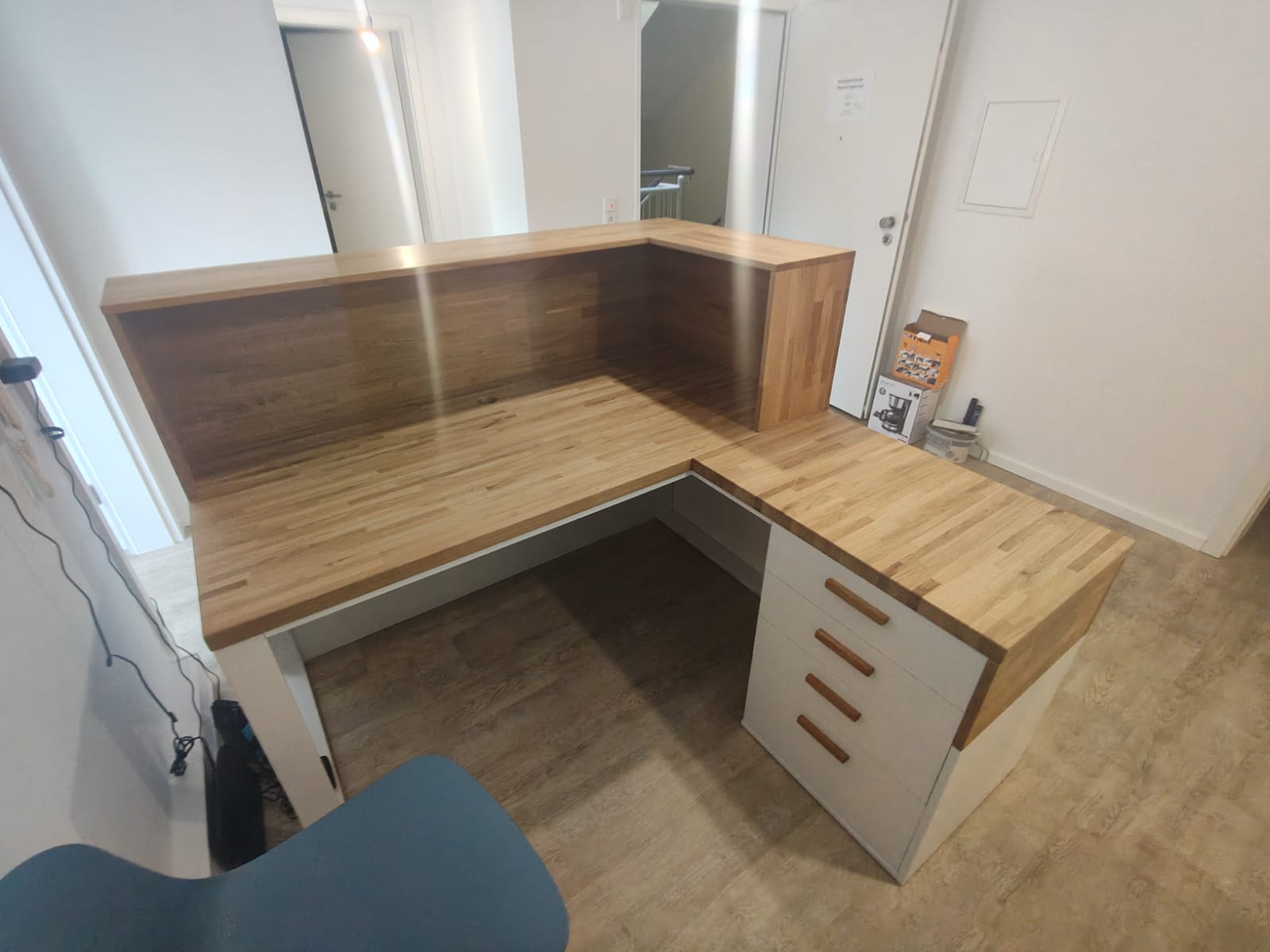 Der Empfangstresen sieht sehr professionell aus und hinterlässt sofort einen guten ersten Eindruck. Er ist im Arbeitsalltag komfortabel, gut durchdacht und solide verarbeitet. Die Kunden loben ihn oft, und wir sind sehr zufrieden mit unserer Wahl.