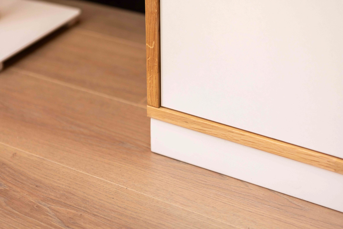 4. Ölen – Schützen Sie die Arbeitsplatten mit drei Schichten Naturöl, damit das Holz keine Feuchtigkeit aufnimmt. Auf Wunsch können die Eichenelemente lackiert werden.
