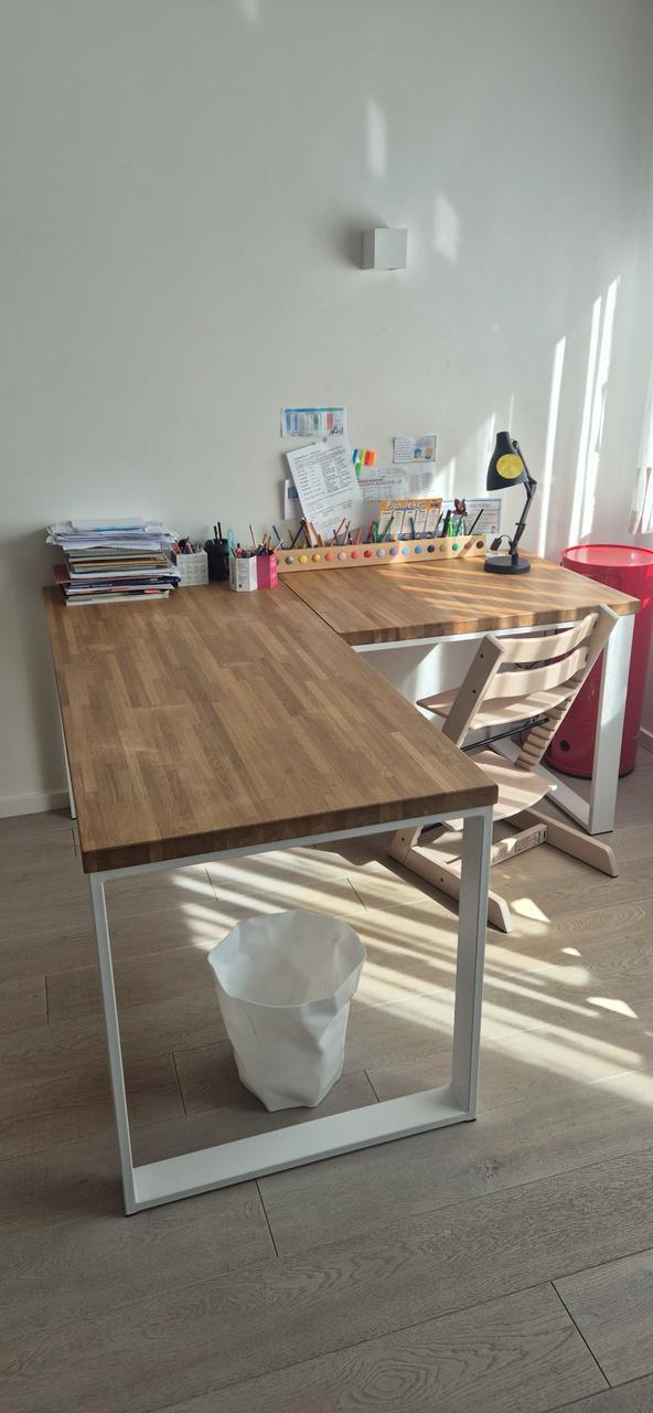 Der weiße Eckschreibtisch mit Eichenholzplatte sieht sehr elegant aus und fällt sofort ins Auge. Die Kombination aus Weiß und Naturholz sieht toll aus, und die Tischplatte selbst ist stabil und komfortabel zum Arbeiten. Viel Platz, alles griffbereit und Komfort für jeden Tag. Ein sehr gelungener Kauf.