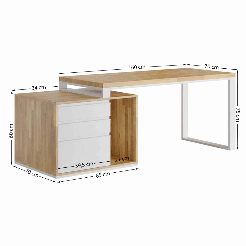 Für Ihren Komfort werden die Tische komplett geliefert. Das Set besteht aus einem 160×70 großen Schreibtisch und einem Sockel mit Schubladen. Alles, was Sie tun müssen, ist, die beiden zusammenzufügen. Das hat den Vorteil, dass man sehr viel Zeit sparen kann.