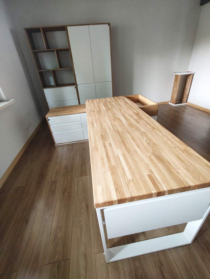Ich bin sowohl von der Solidität der Möbel als auch von der Ästhetik beeindruckt. Dank ihrer Arbeit habe ich ein professionell und umfassend ausgestattetes Büro.