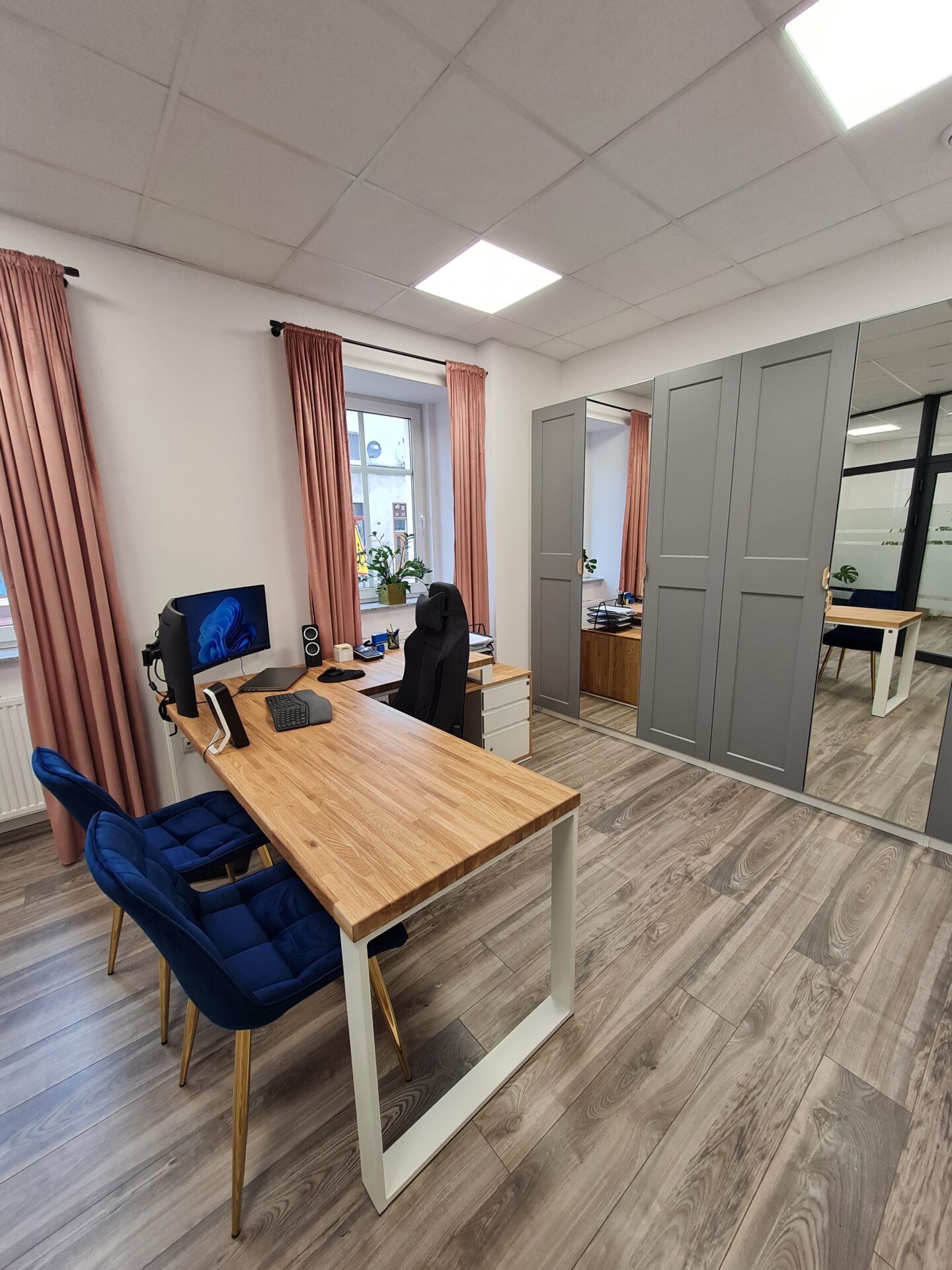 Kunden sind ständig auf der Suche nach modernen Lösungen – daher entwickeln wir unser Sortiment konsequent weiter. Auch der Metall-Holz-Schreibtisch wurde zu diesem Zweck modifiziert. Bereits der Austausch eines Rahmenteils durch eine kürzere Variante genügte, um das Design zu modernisieren und dem Möbelstück ein neues Erscheinungsbild zu verleihen. Der Metallrahmen in Kombination mit dem Sockel, der ebenfalls in einer aufgefrischten Version erhältlich ist, bildet eine kohärente Einheit und überzeugt dabei durch seine phänomenale Optik. Dadurch nimmt er auch weniger Platz ein, was insbesondere für kleinere Räume von Vorteil ist.