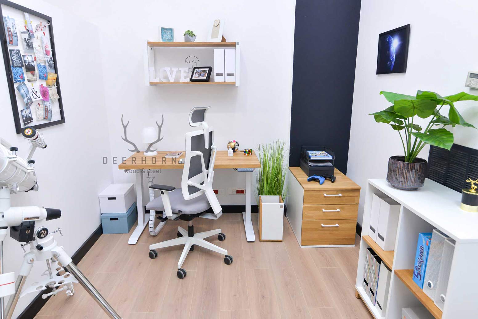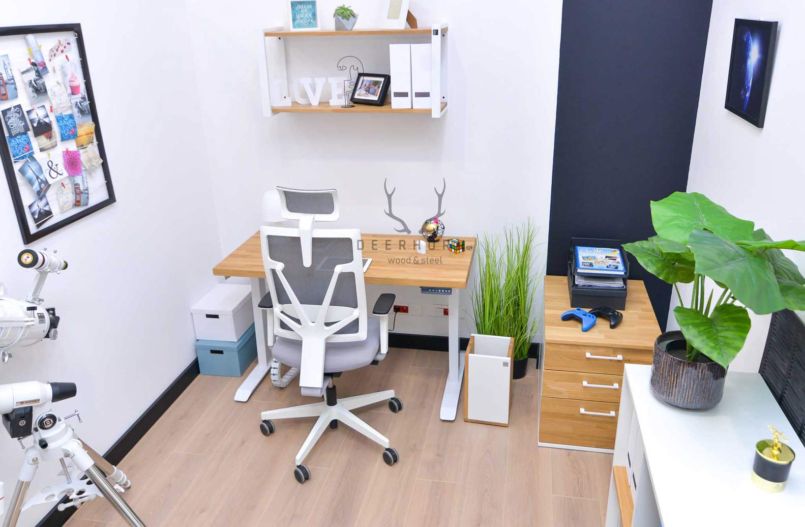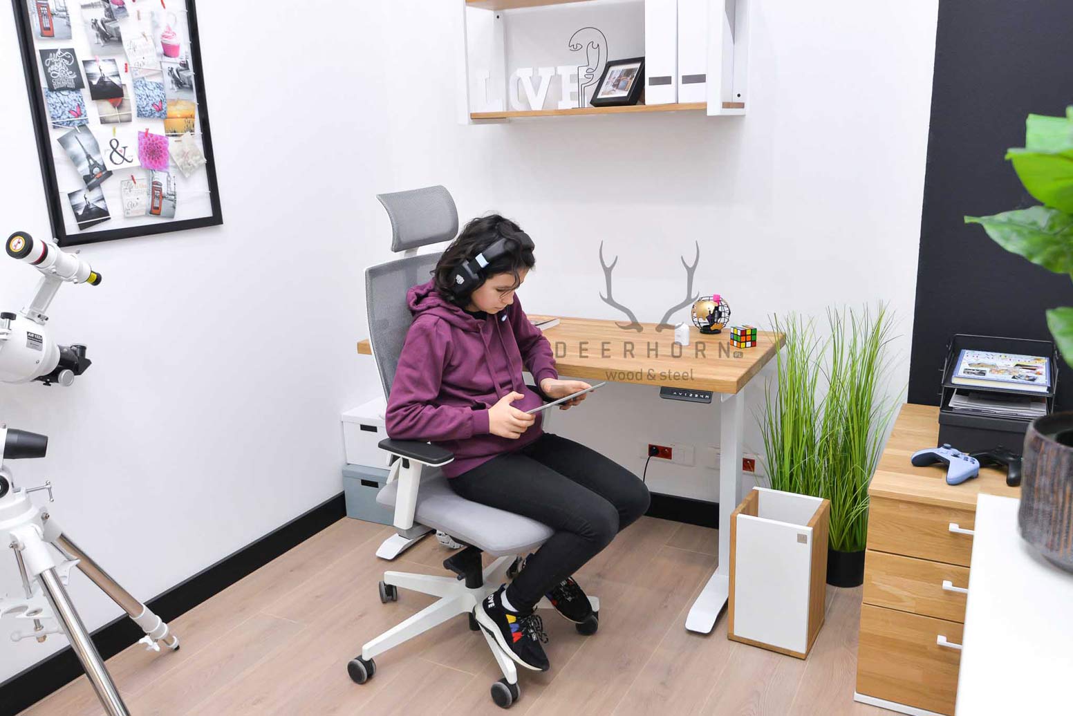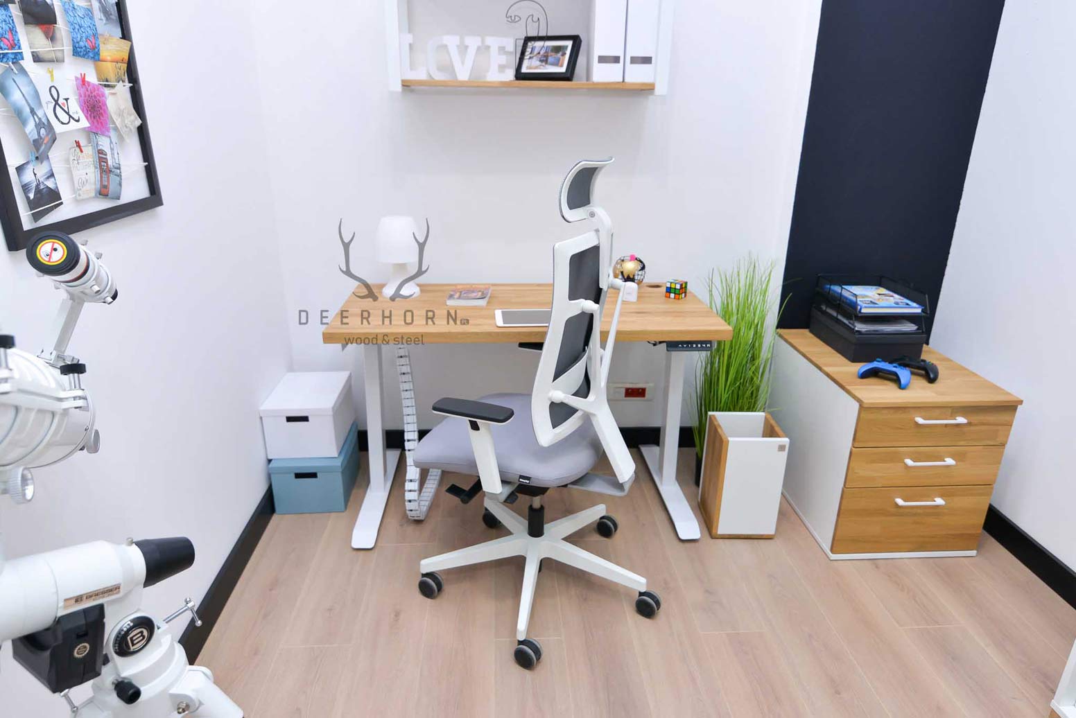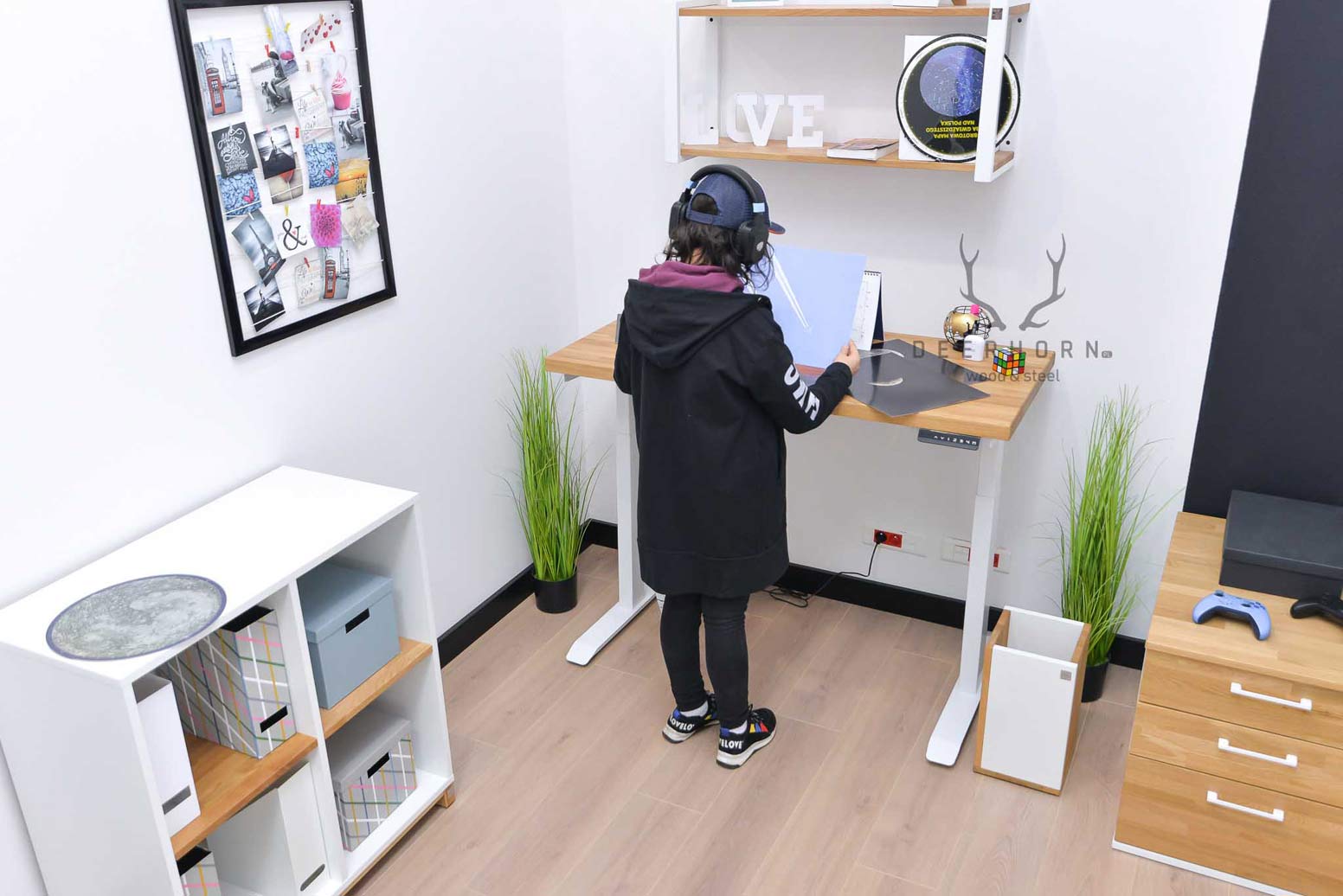Biurko z regulacją wysokości to jeden z najlepszych zakupów do mojego domowego biura. W połączeniu z naturalnym drewnem prezentuje się naprawdę świetnie.