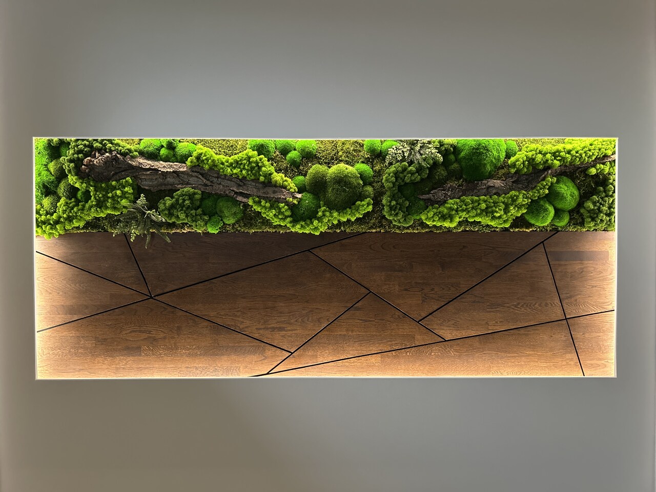 Das Motiv von Holz und Moos ist nicht zufällig entstanden. Von Anfang an wollten wir die Natur in diesem Raum spüren – ihre Ruhe, ihren Rhythmus und ihre Authentizität. Wir waren auf der Suche nach einem Ausgleich zur Hektik des Alltags und gleichzeitig nach etwas, das uns über Jahre hinweg begleiten würde. Die Inspiration reifte langsam, aber eines war sicher: Holz sollte das Herzstück dieser Treppe sein.