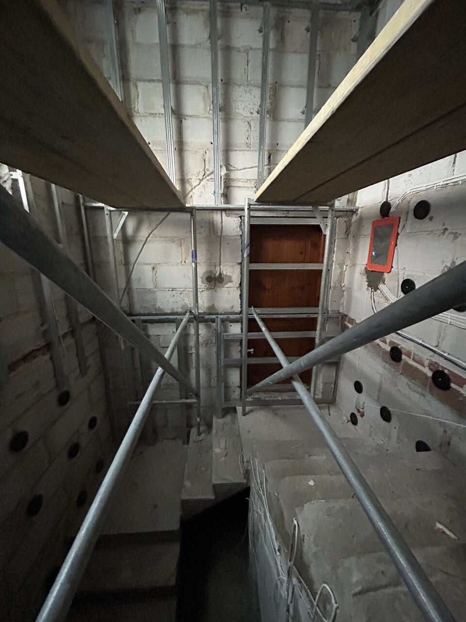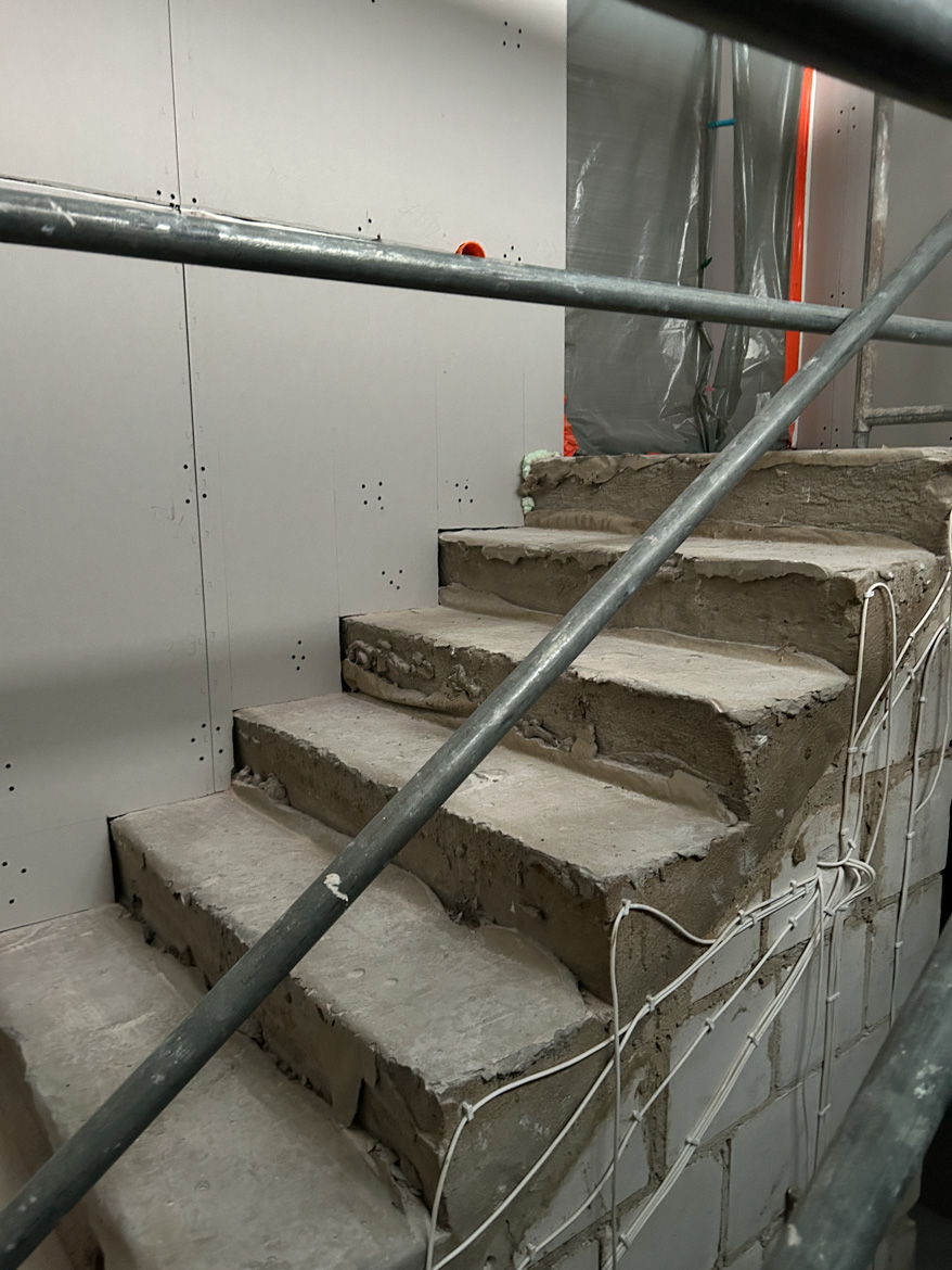 Bereits zu diesem Zeitpunkt begannen wir, an die Zukunft und die Details zu denken, die die Atmosphäre des gesamten Treppenhauses ausmachen sollten. Wir planten eine separate Stromversorgung für die Rollläden, Kabel für die Video-Gegensprechanlage sowie eine Installation, mit der die Systeme in Zukunft gesteuert und erweitert werden können. Jedes Kabel hatte seinen Platz und seine Berechtigung – nichts wurde dem Zufall überlassen.
